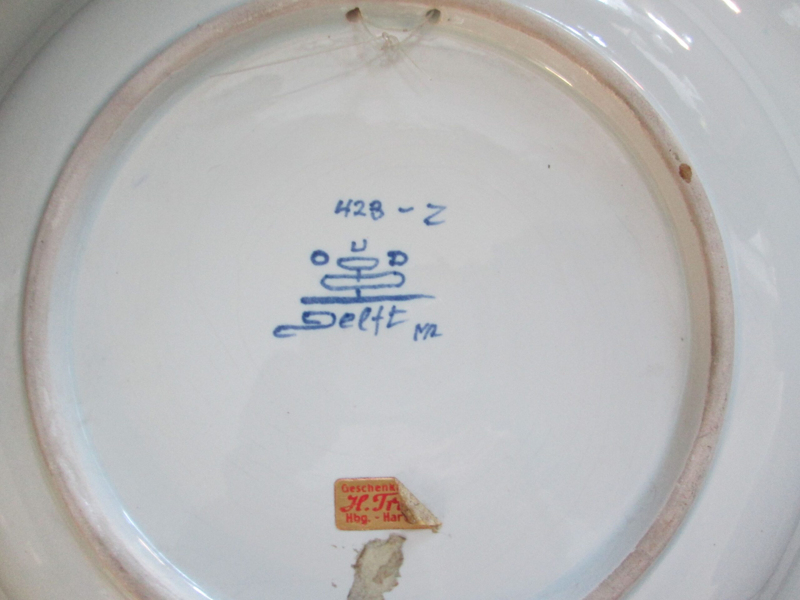 Ozdobny talerz z porcelany firmy Delft. Możliwość powieszenia. Średnica 24 cm. Stan bardzo dobry.