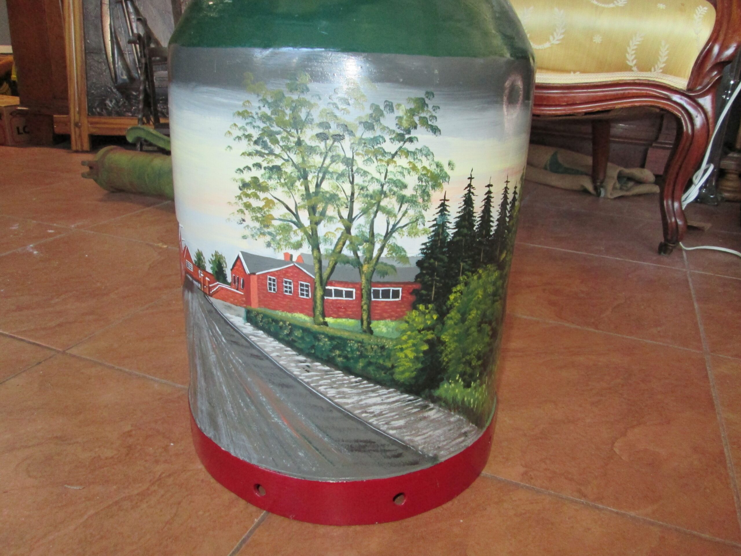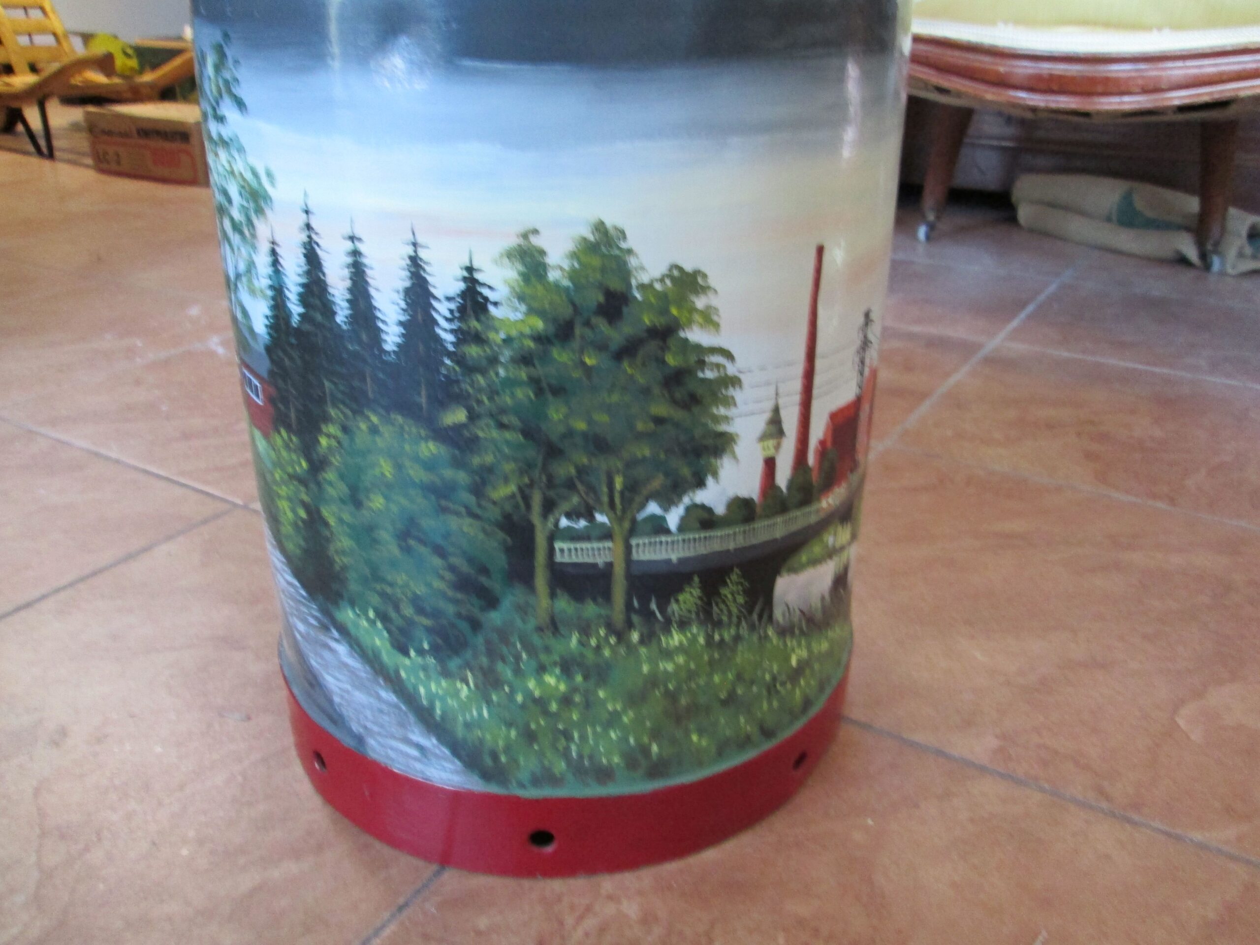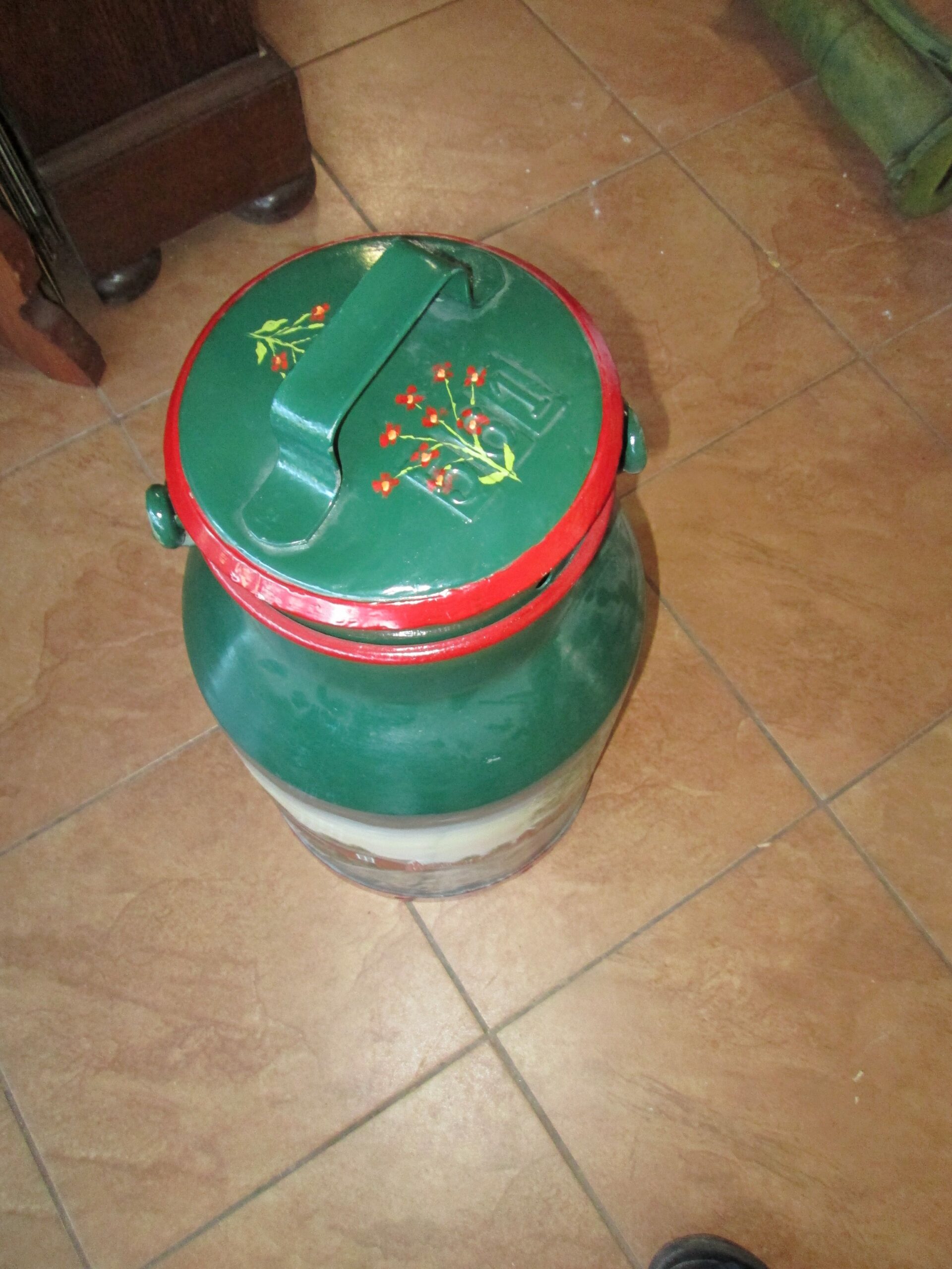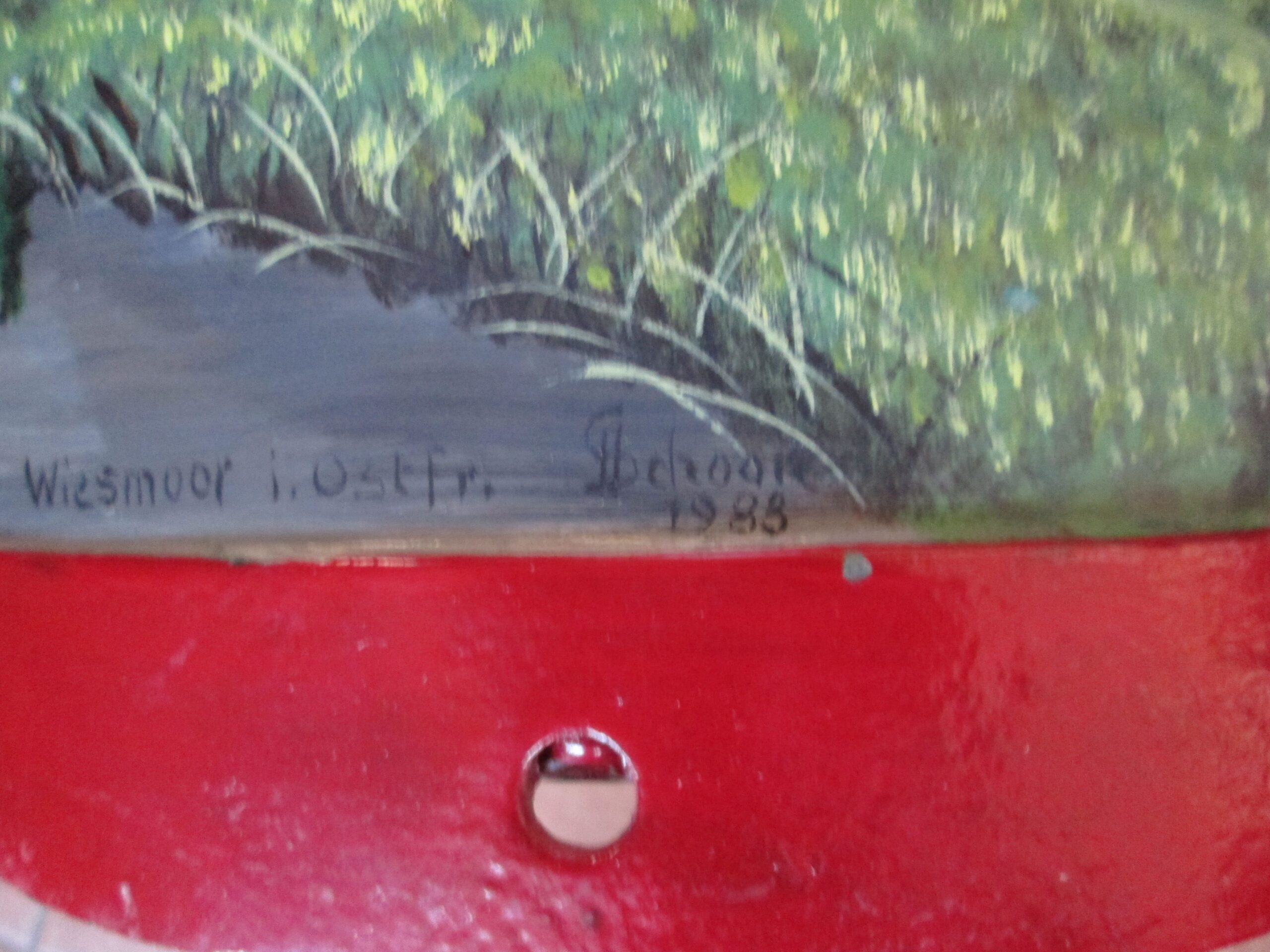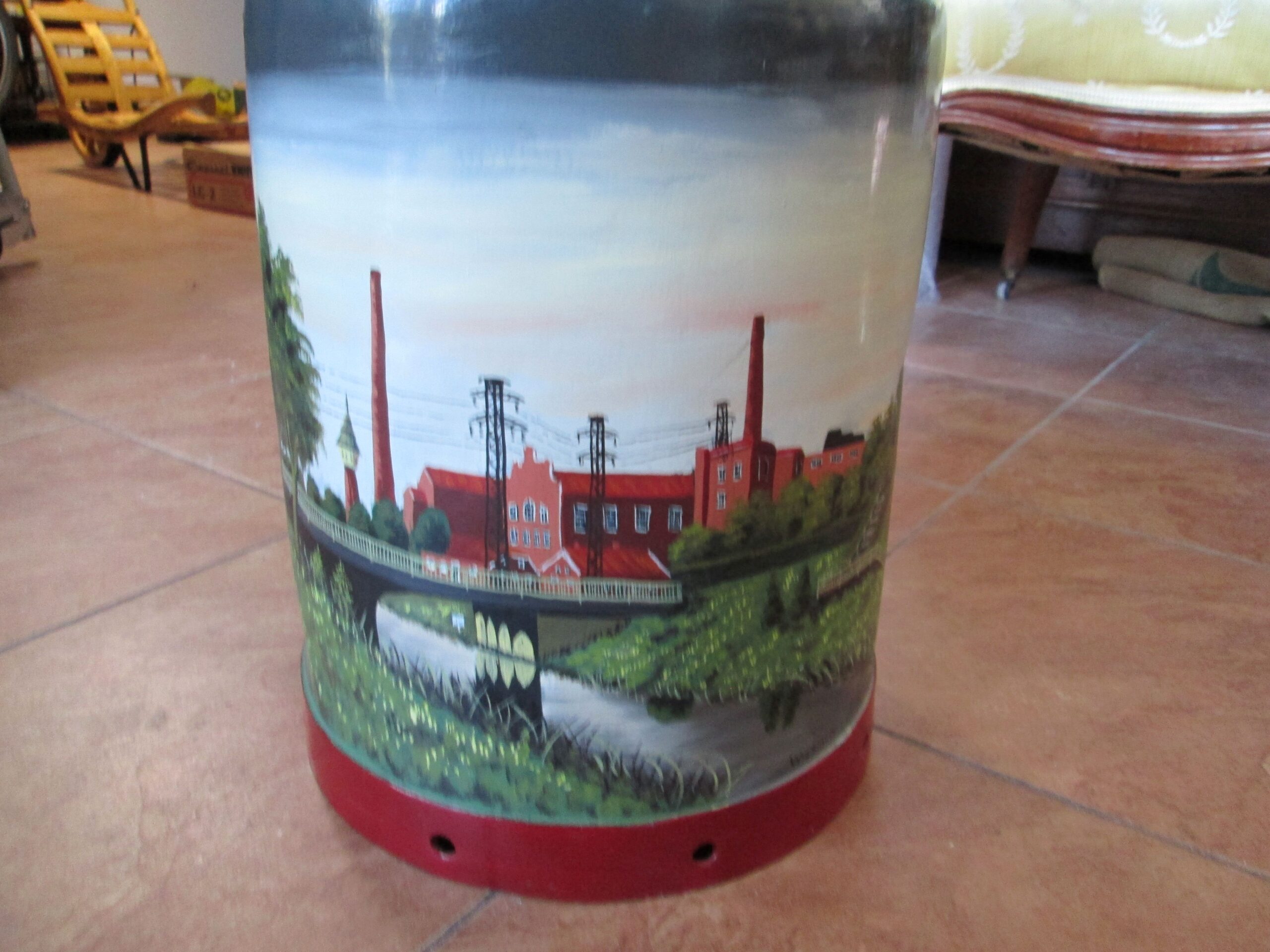 Duża kanka na mleko ręcznie malowana . Podpisana Wiesmoor i. Ostfr. i podpis malującego Schogin 1983 r.Wysokośc 52 cm , średnica 24 cm. Piękna ozdoba do ogrodu lub na parasole.