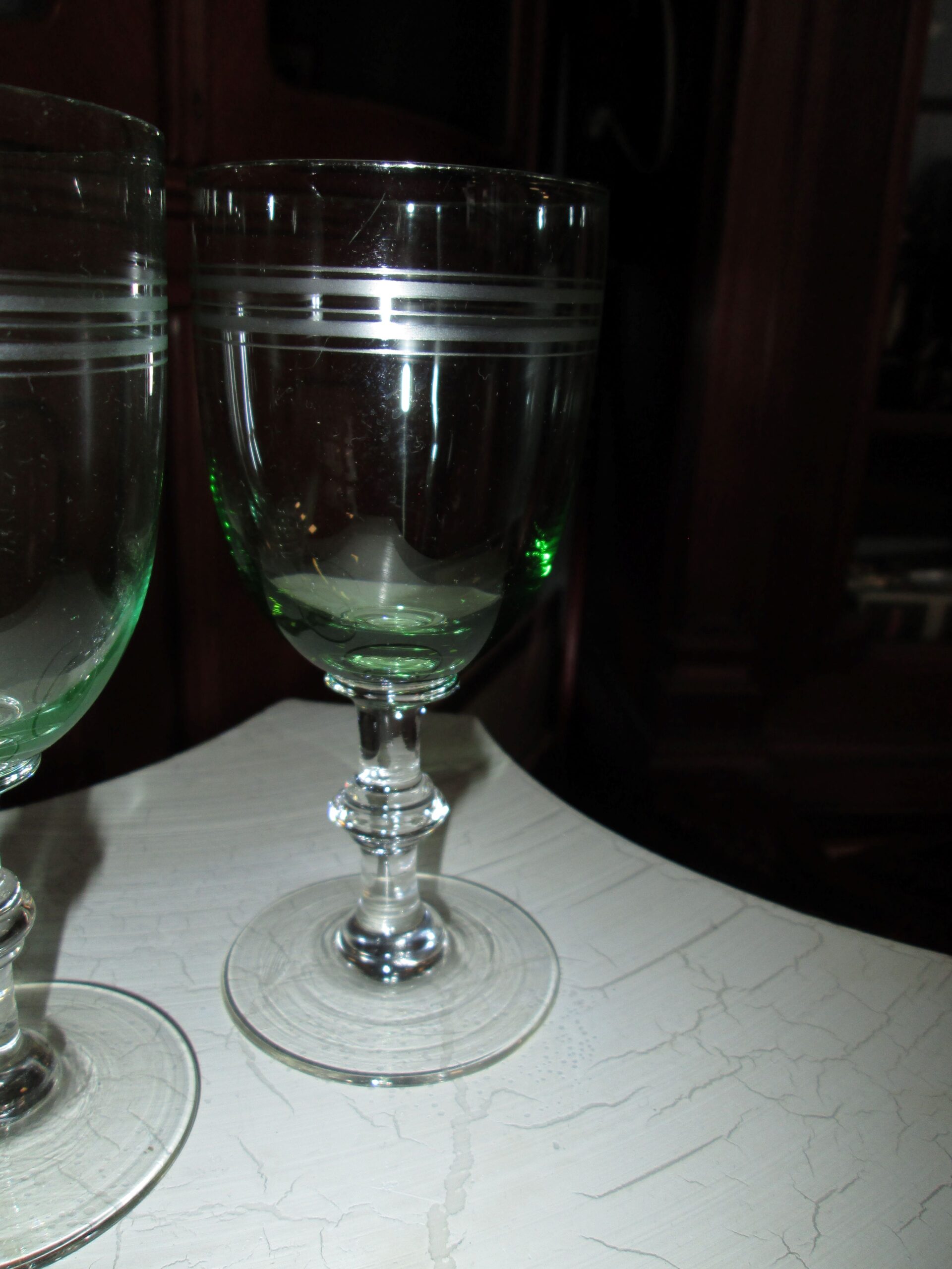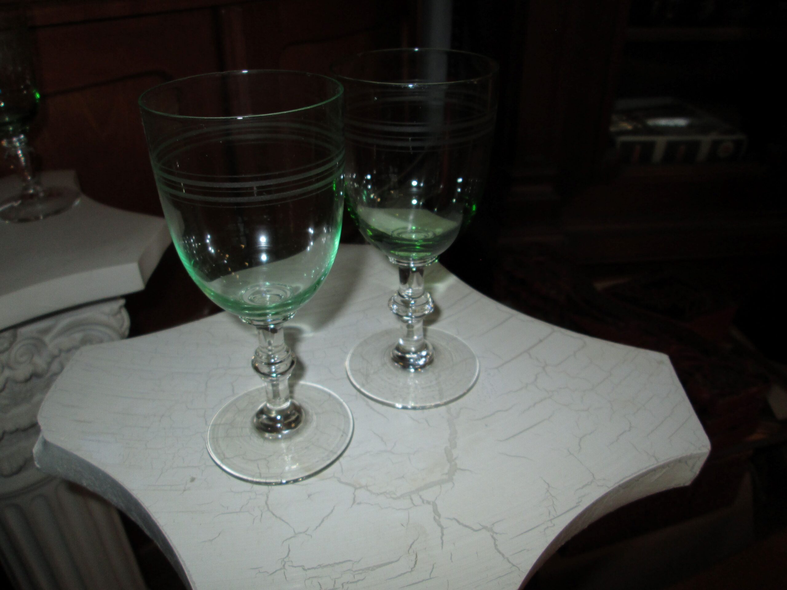 2 piękne kieliszki wykonane w latach 30-tych ubiegłego wieku. Wzornictwo typowe dla okresu Art deko. Wysokość 13.5 cm, średnica czary 6 cm . Stan bardzo dobry.Cena za 2 sztuki.