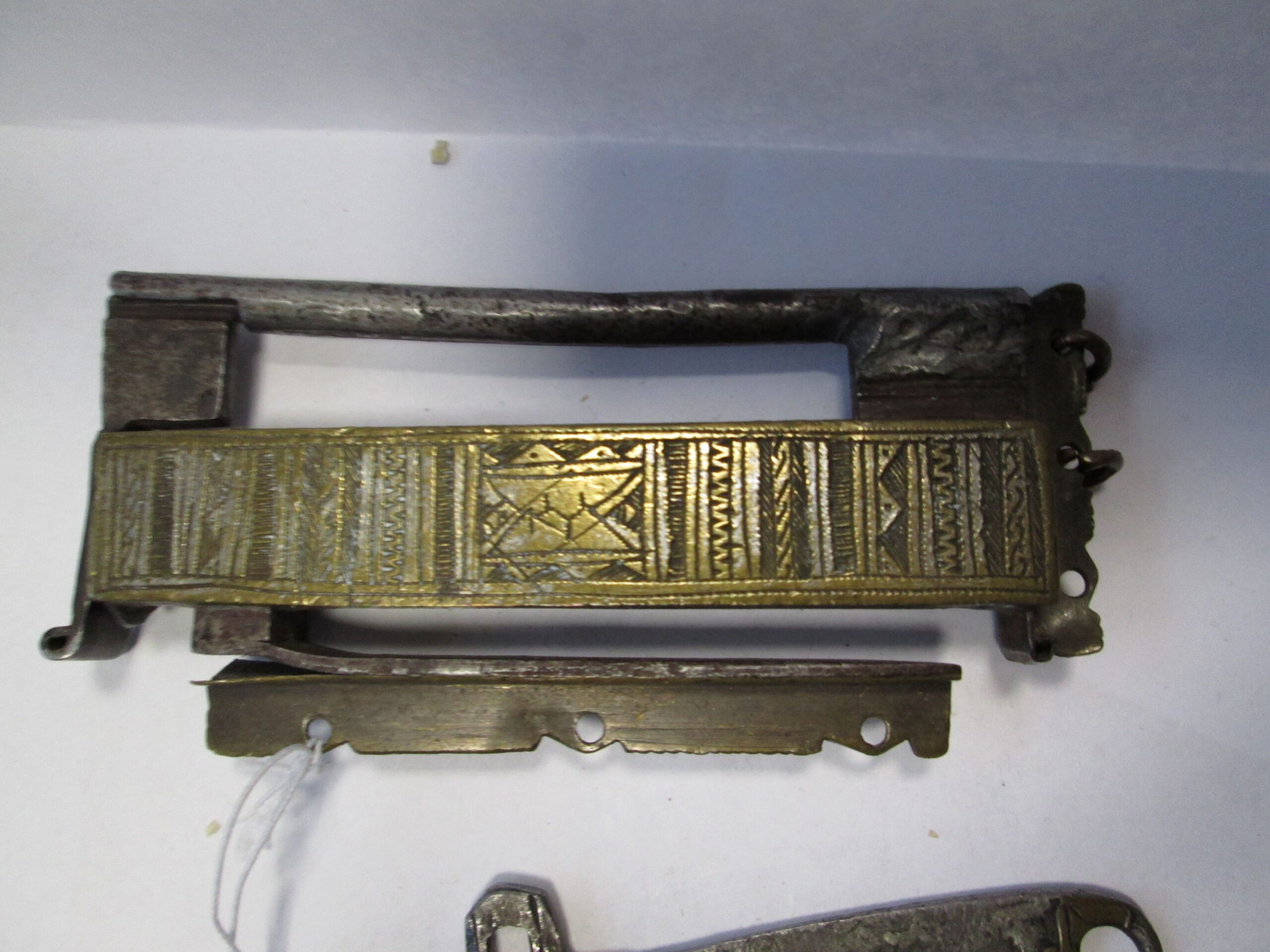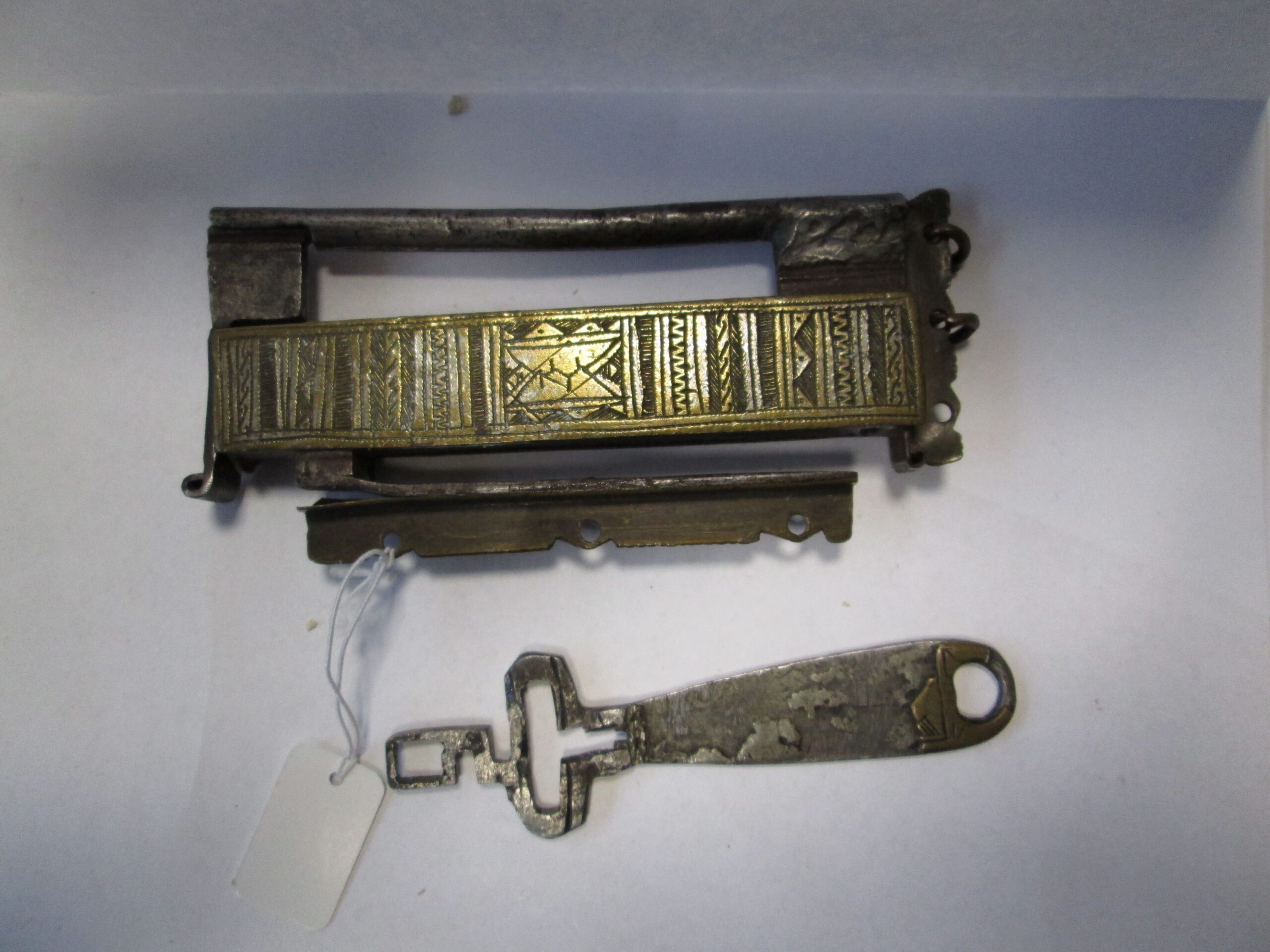 Stara kłódka z kluczem wykonana w XIX wieku w Afryce północnej. Zamknięcia takie wykonywane były przez Tuaregów (Tuaregowie to berberyjskie plemię, lud koczowniczych pasterzy zamieszkujący głównie Saharę, szczególnie na terenach Algierii, Nigru, Mali i Libii. Znani są jako „niebiescy ludzie Sahary” z powodu tradycyjnych, barwionych indygo szali.) Wykonana częściowo z mosiądzu ,częściowo ze stali. Długość 11 cm , szerokość 5 cm , grubość 1.5 cm. Pomimo swego wieku działa bardzo dobrze.