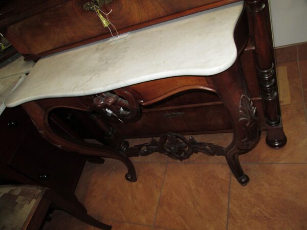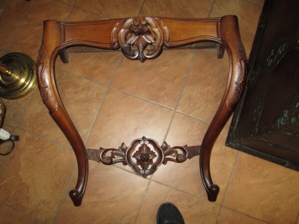 Oryginalna konsola Ludwik Filip . Blat z marmuru . Podstawa z drewna orzechowego .Piękne zwieńczenie nóg . Konsole należy przykręcić do ściany. Blat o wymiarach 32 cm szeroki, 78 cm długi. Wykonana w drugiej połowie XIX wieku.
