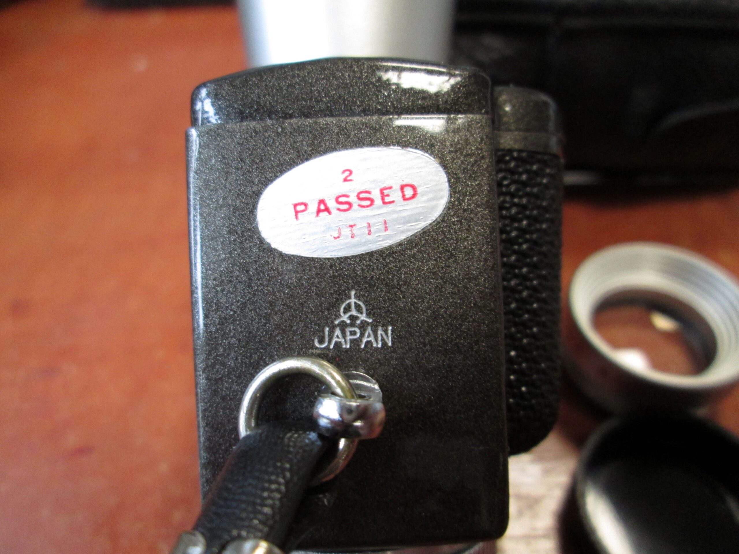 Monokular produkcji japońskiej sygnowany z obiektyw 8 power. Dodatkowy obiektyw 6 power. Oryginalny pokrowiec. Stan bardzo dobry. Długość 9 cm. Bardzo wygodny do ręki. Stan bardzo dobry.