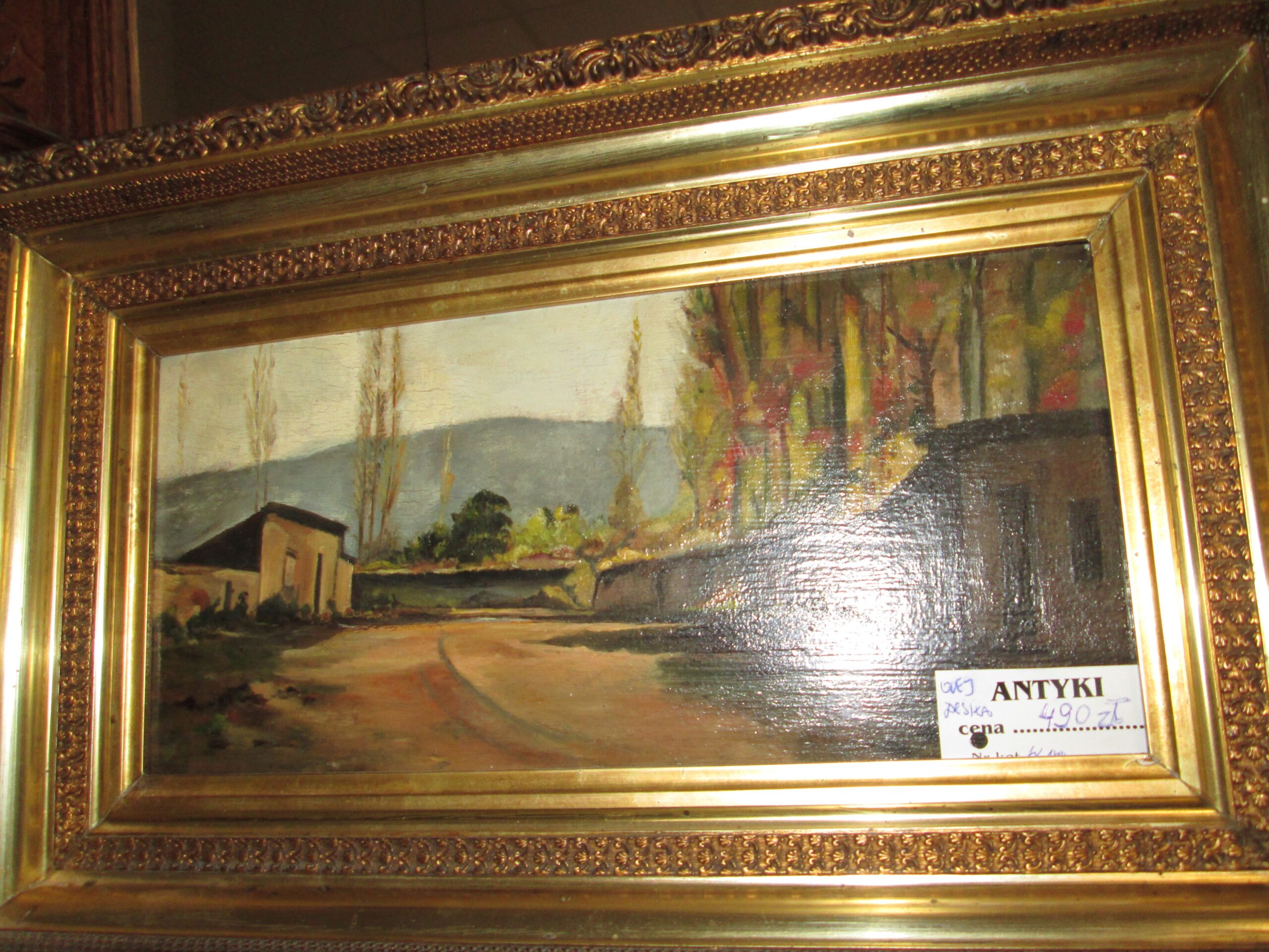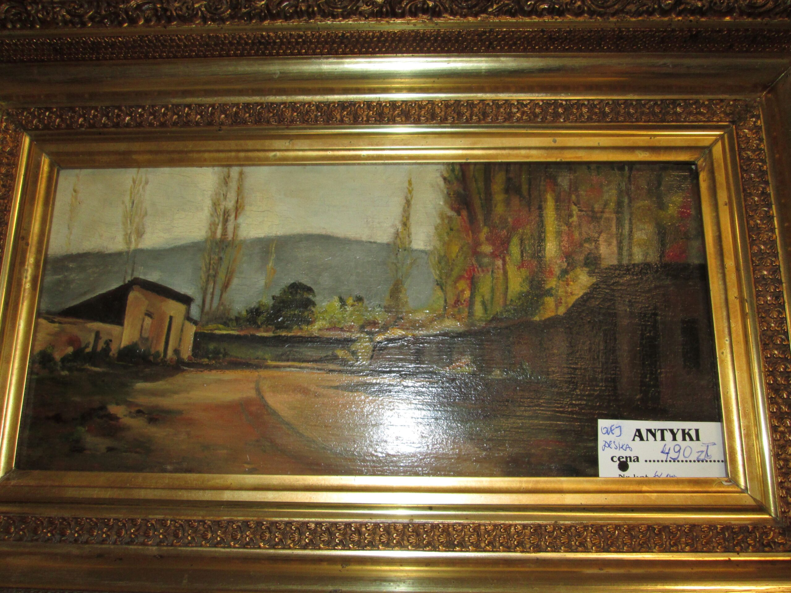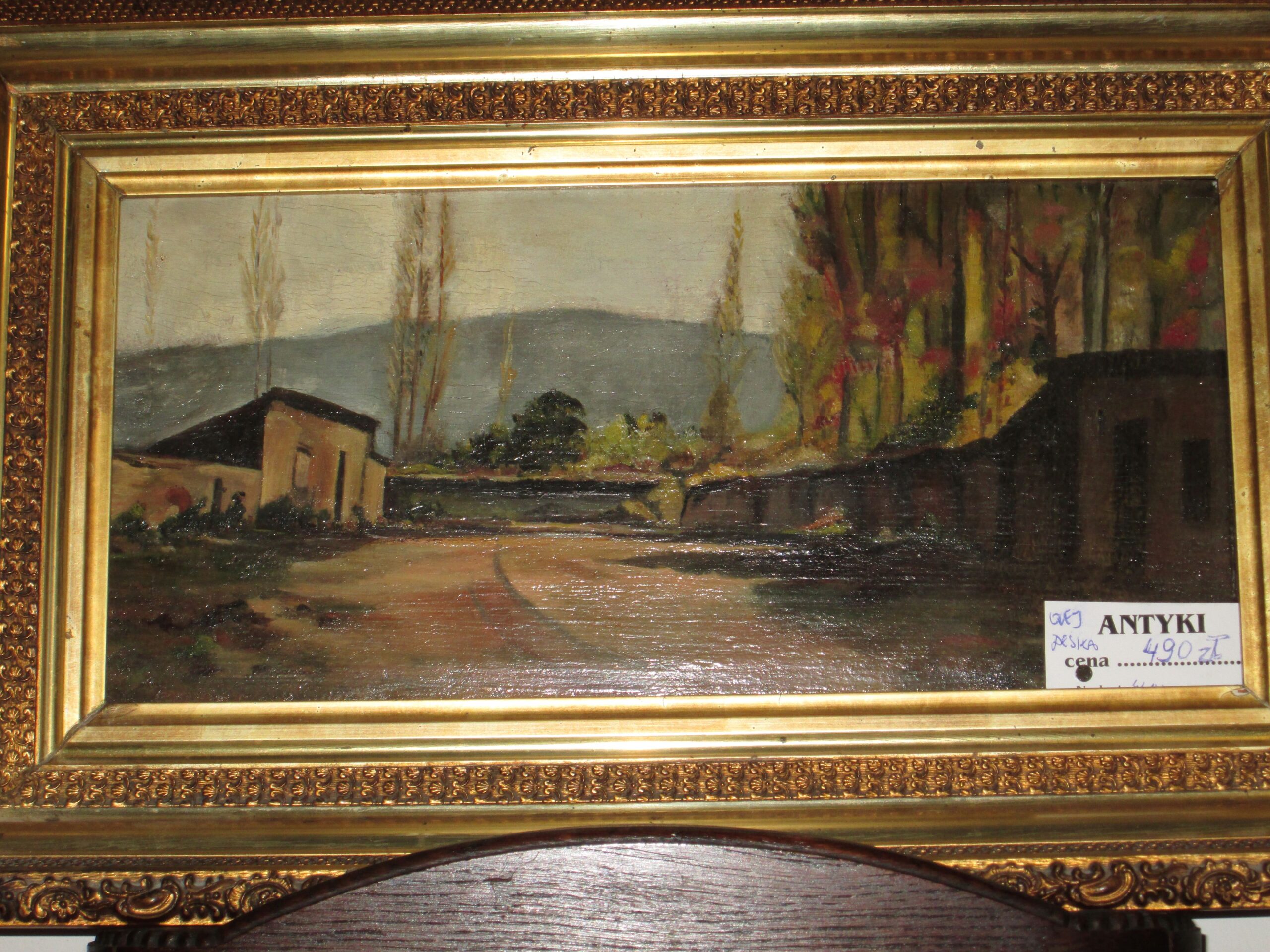 Ciekawy obraz namalowany farbami olejnymi na desce. Przedstawia włoski pejzaż. Oprawiony w piękną ramę. Brak podpisu malarza. Szerokość z ramą 55 cm ,wysokość 35 cm. Pomimo braku podpisu widać że obraz namalował ktoś potrafiący złapać piękno w danej chwili.