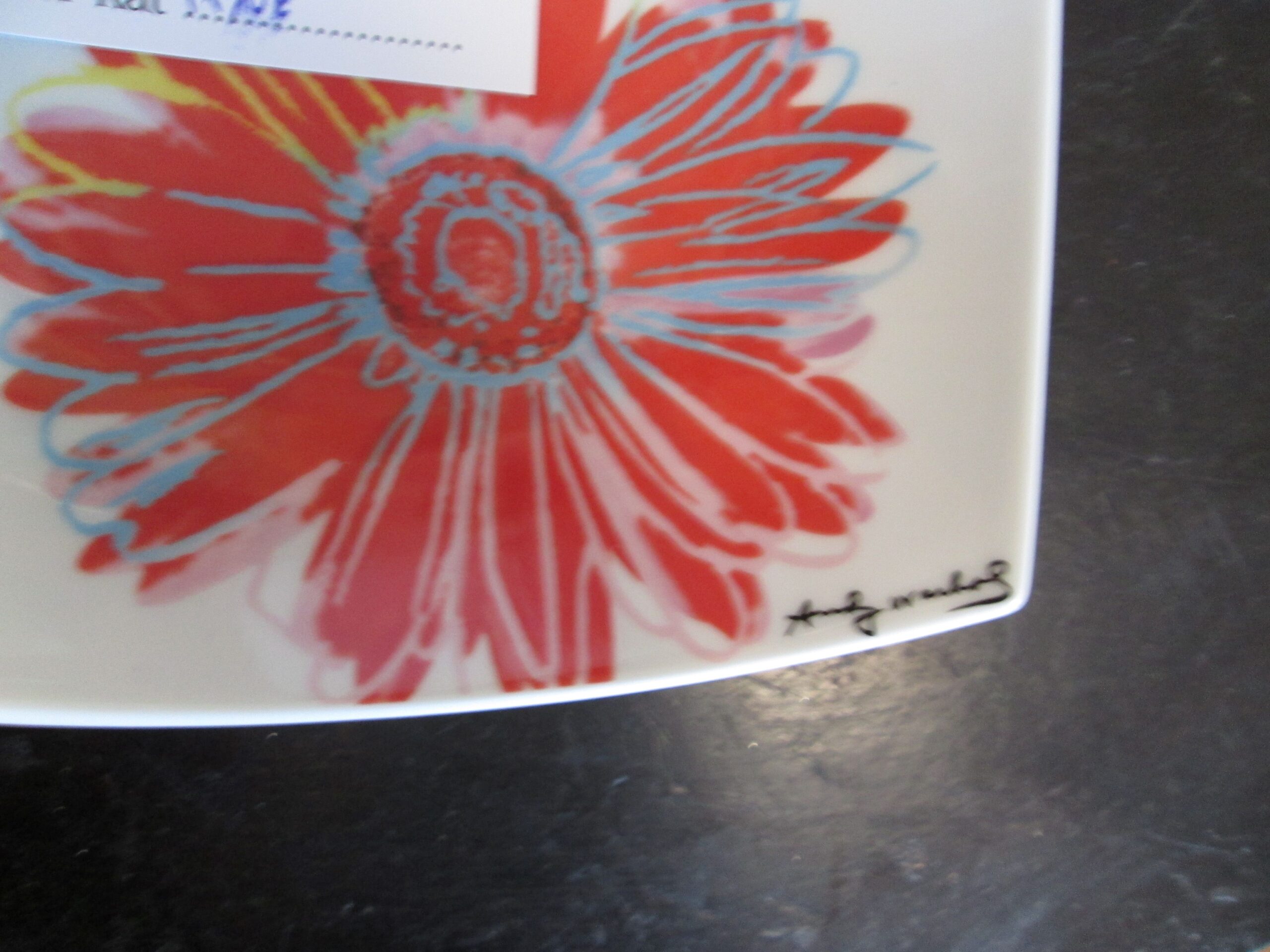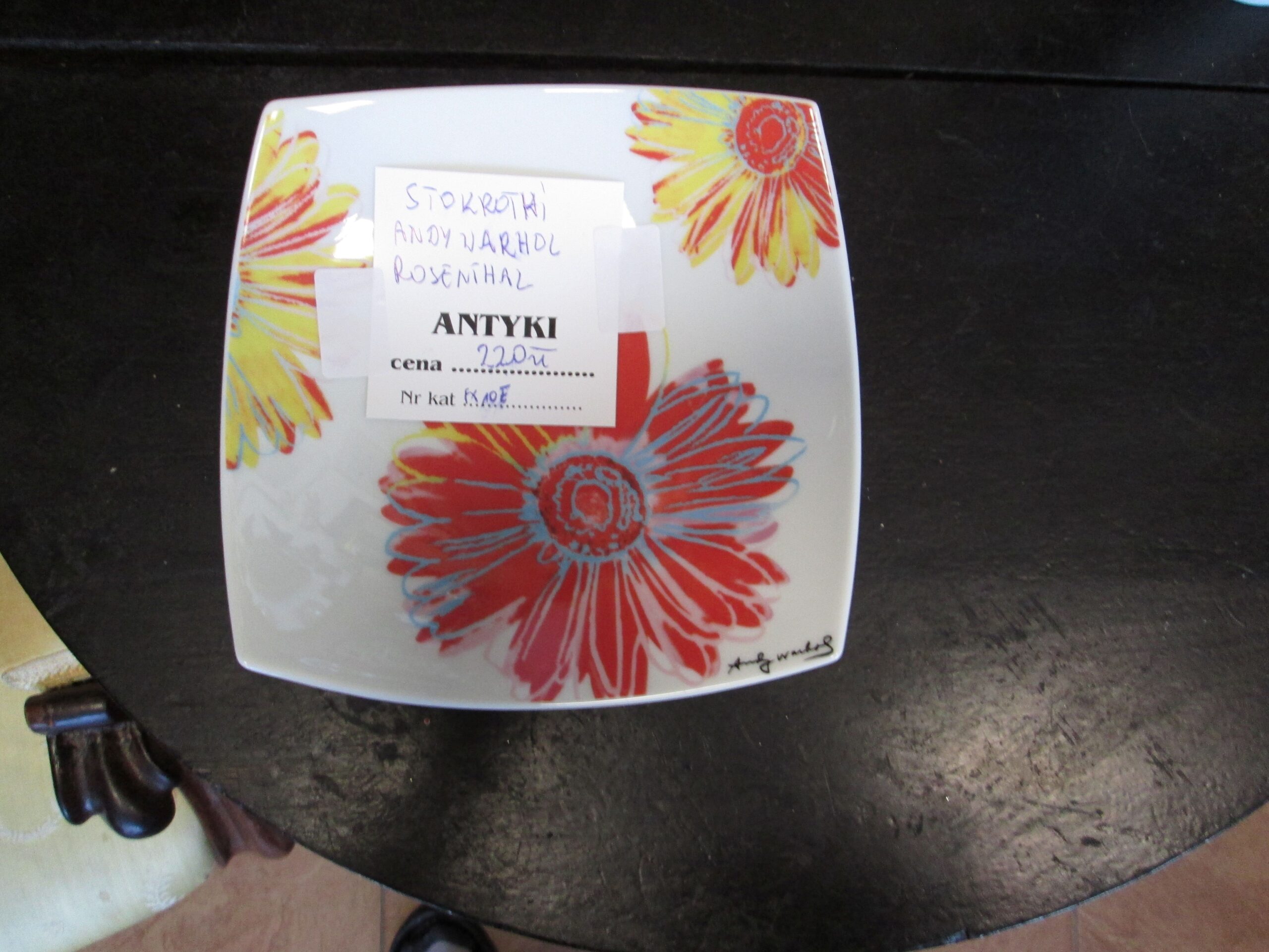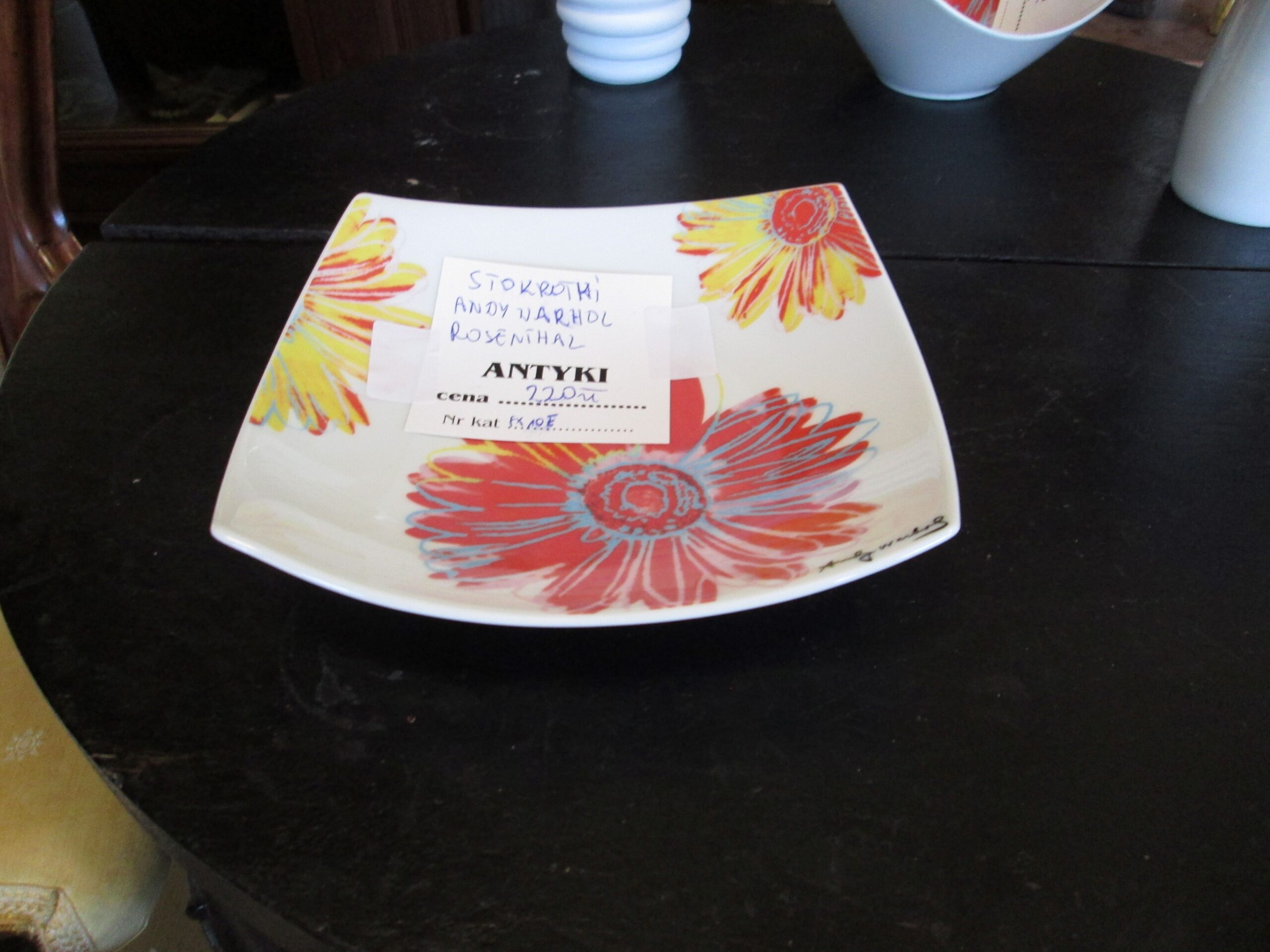 Paterka wykonana w firmie Rosenthal z porcelany. Brzegi wywinięte do góry. Projekt wykonał Andy Warhol. Wymiary 18*18 cm , wysokość boków 4 cm.Stan witrynowy.Sygnowana.