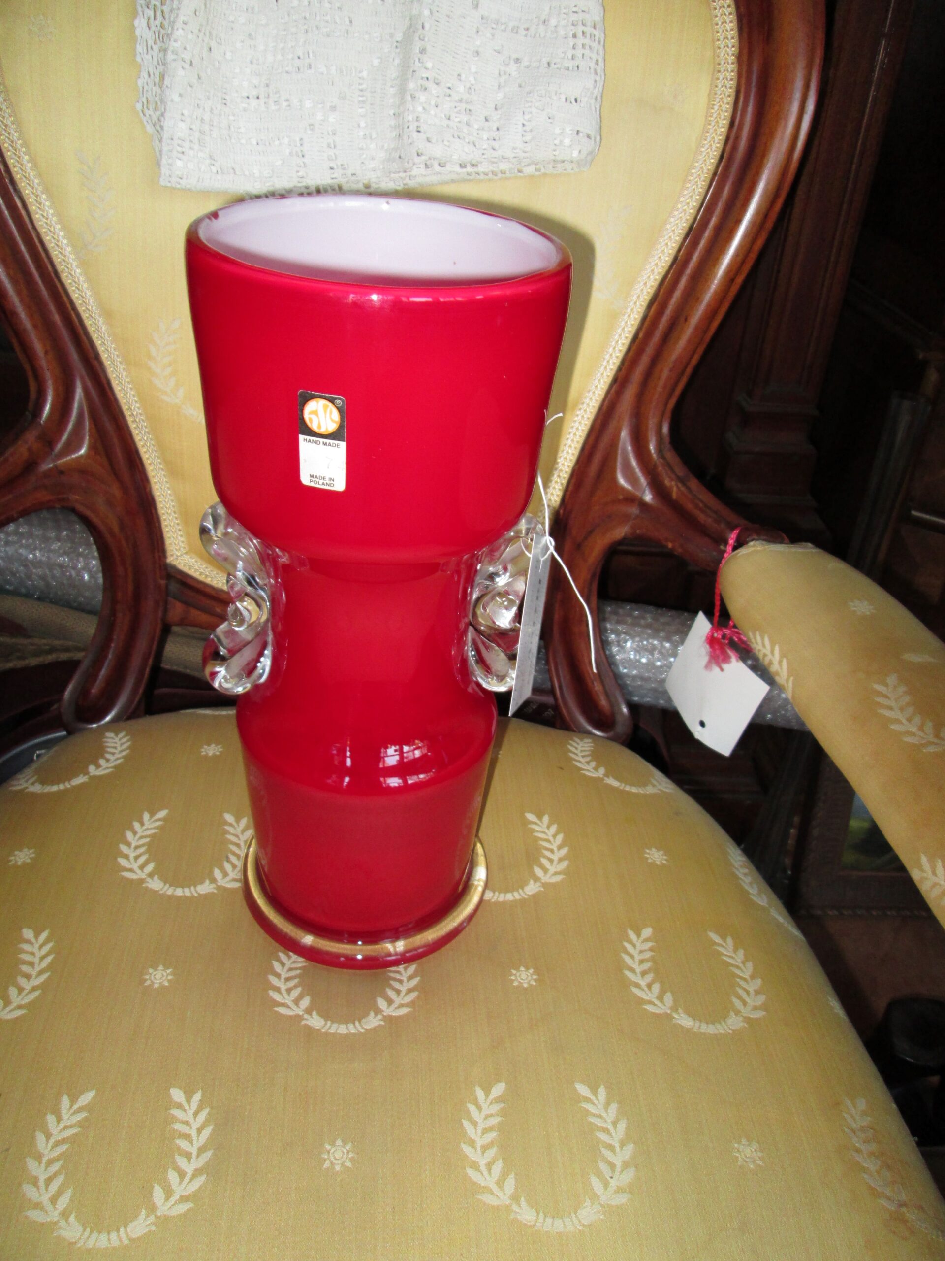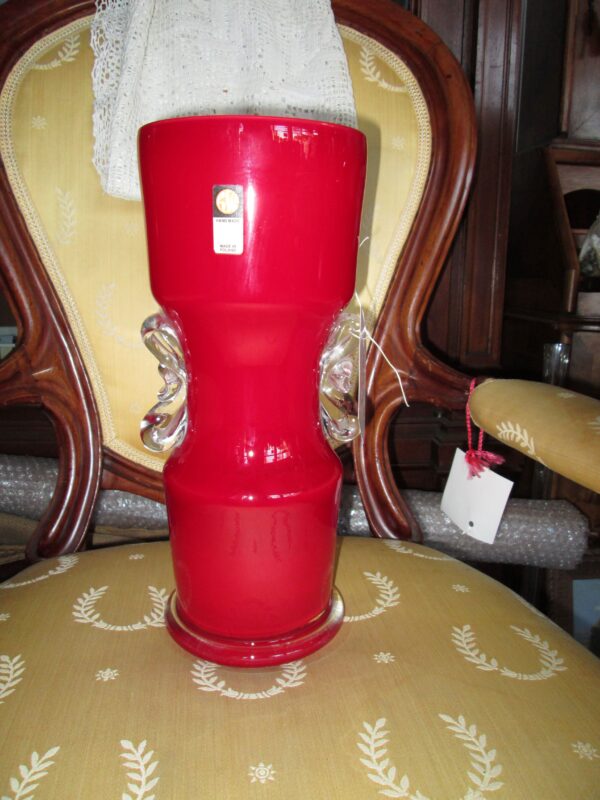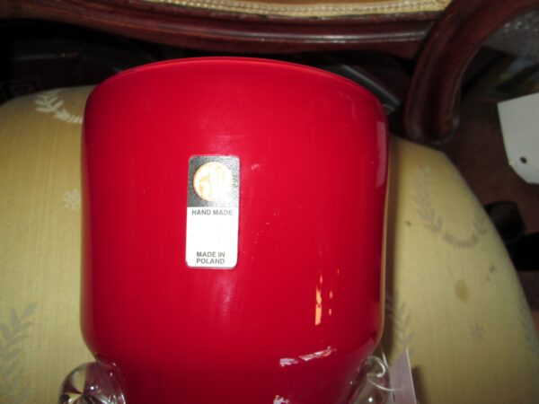 Piękny wazon ze szkła warstwowego wykonany w hucie szkła Tarnowiec. Zaprojektowany został przez Jerzego Słuczana-Orkusz.Wazony takie były wykonywane na przełomie lat 1975-1991.Posiada oryginalną metkę. Wysokość 34 cm , średnica 14 cm.Stan bardzo dobry minus.Produkcyjne nie dociągnięcia.