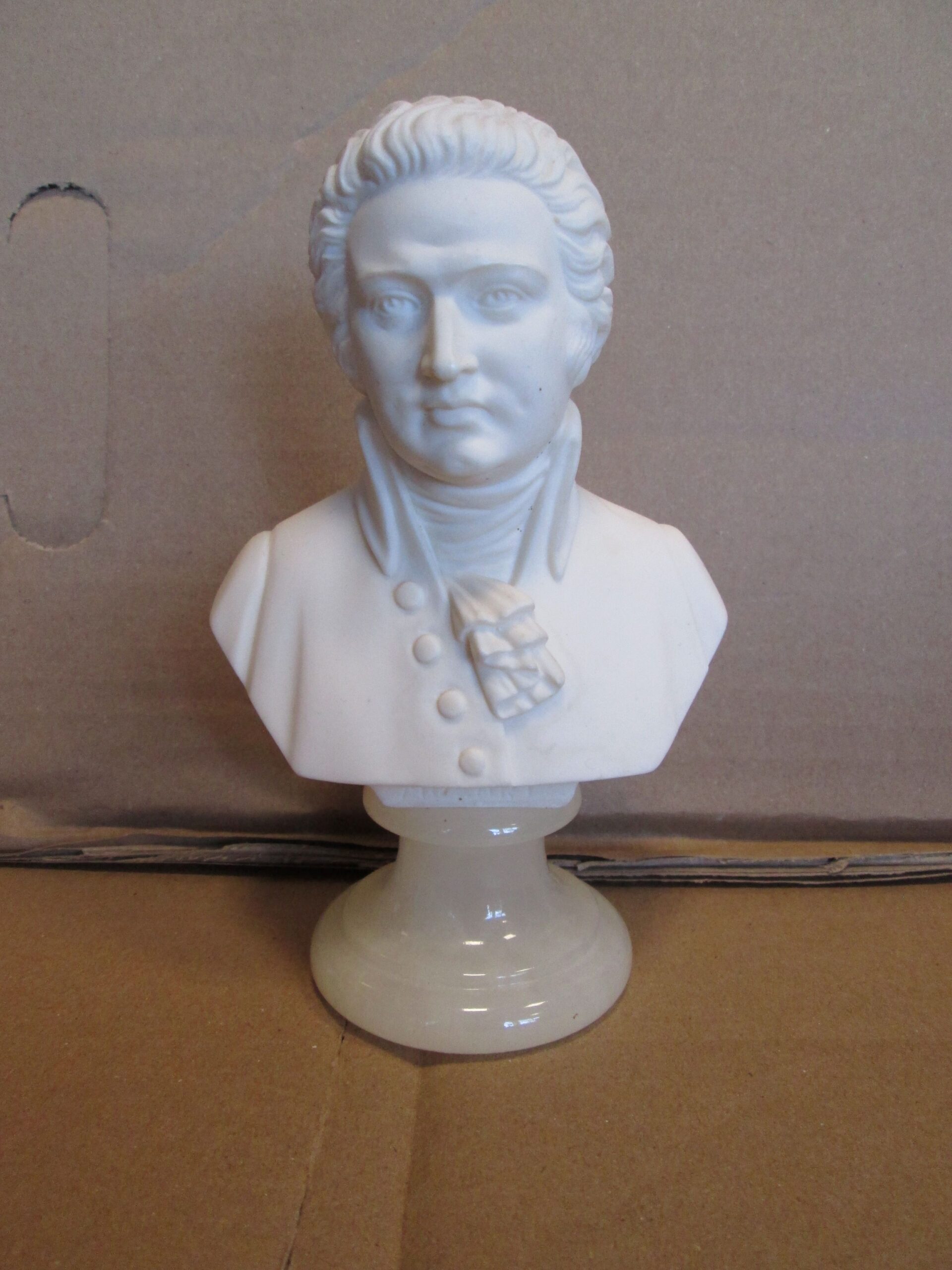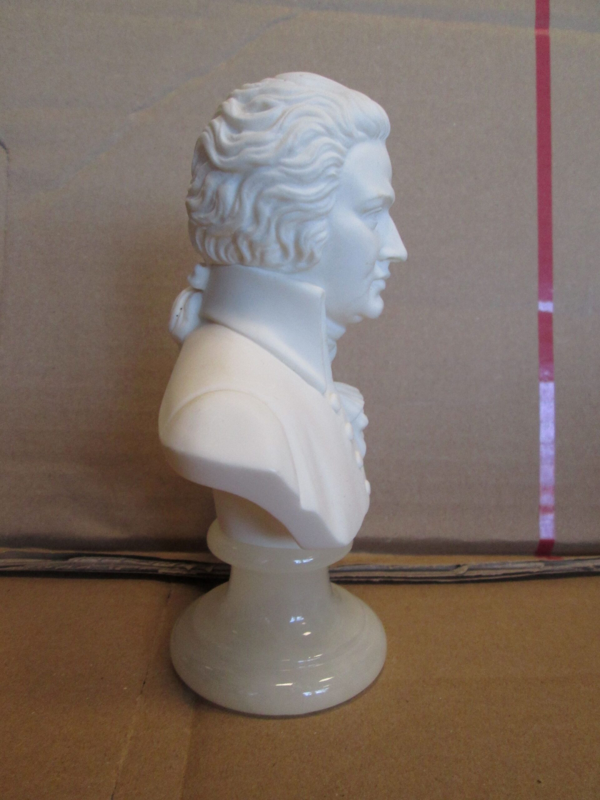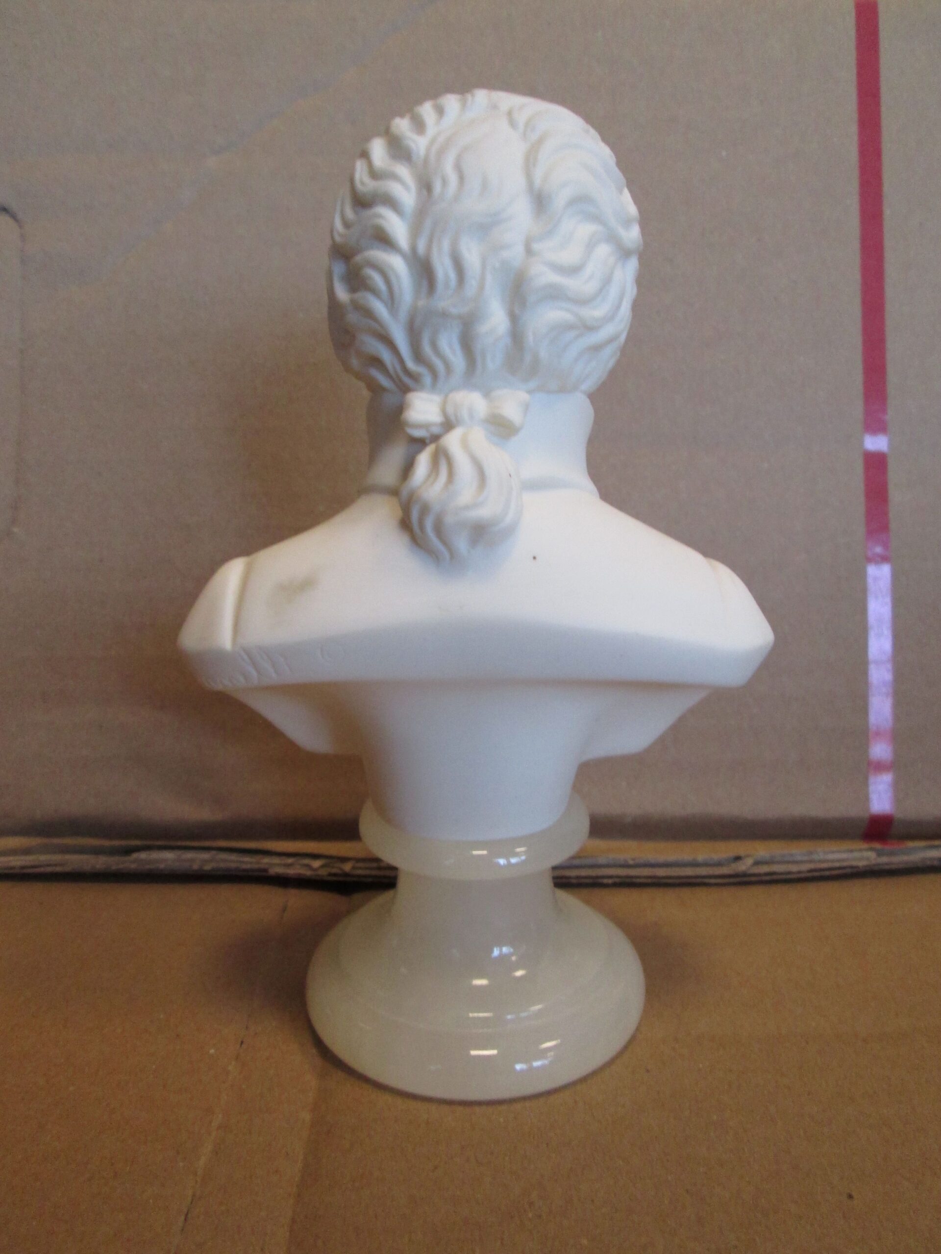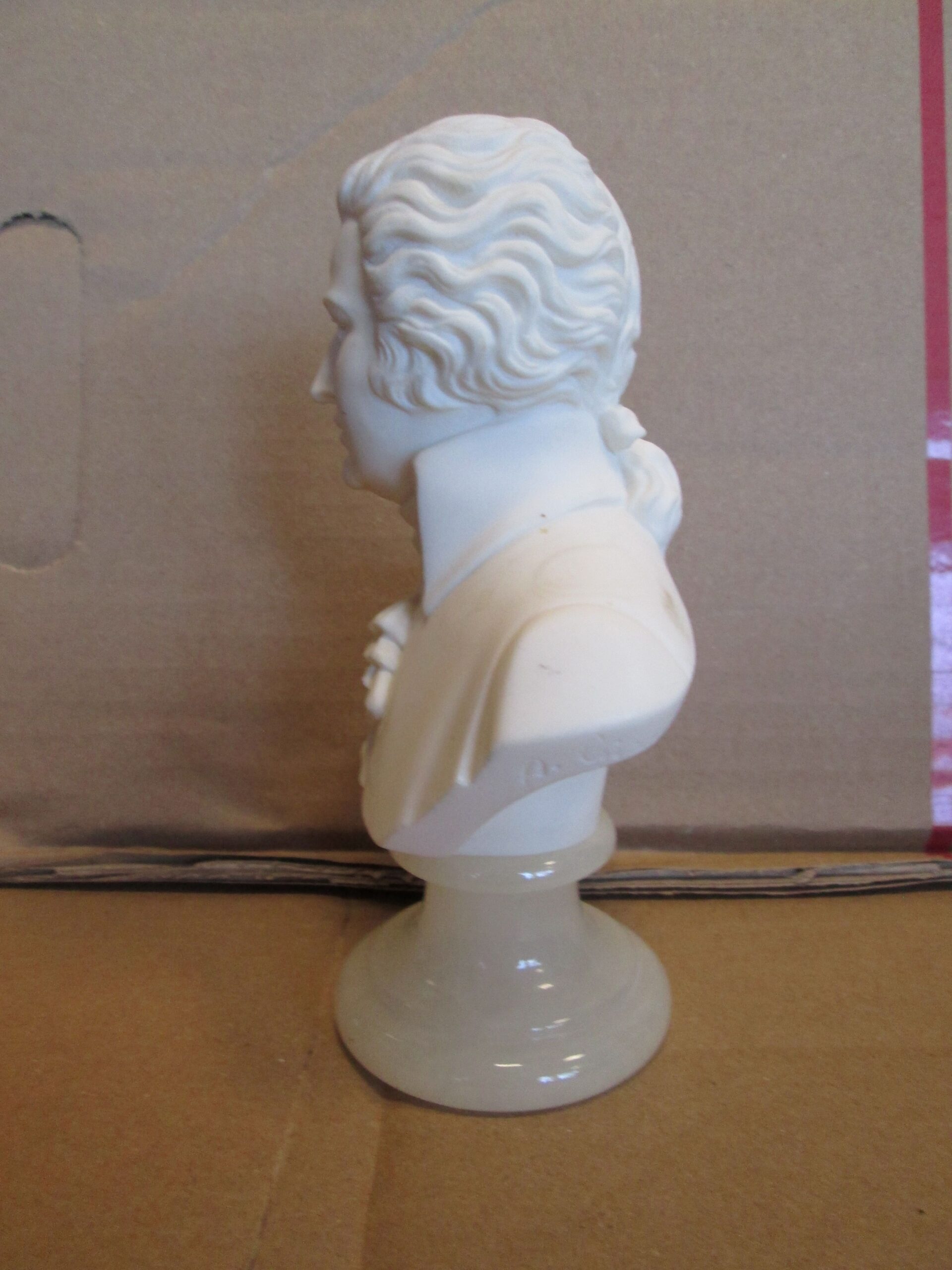 Piękne popiersie Wolfganga Amadeusa Mozarta.Sygnowane A.Giannelli ,włoski artysta. Wysokość 16 cm ,szerokość 9.5 cm. Podstawka z alabastru. Stan bardzo dobry.