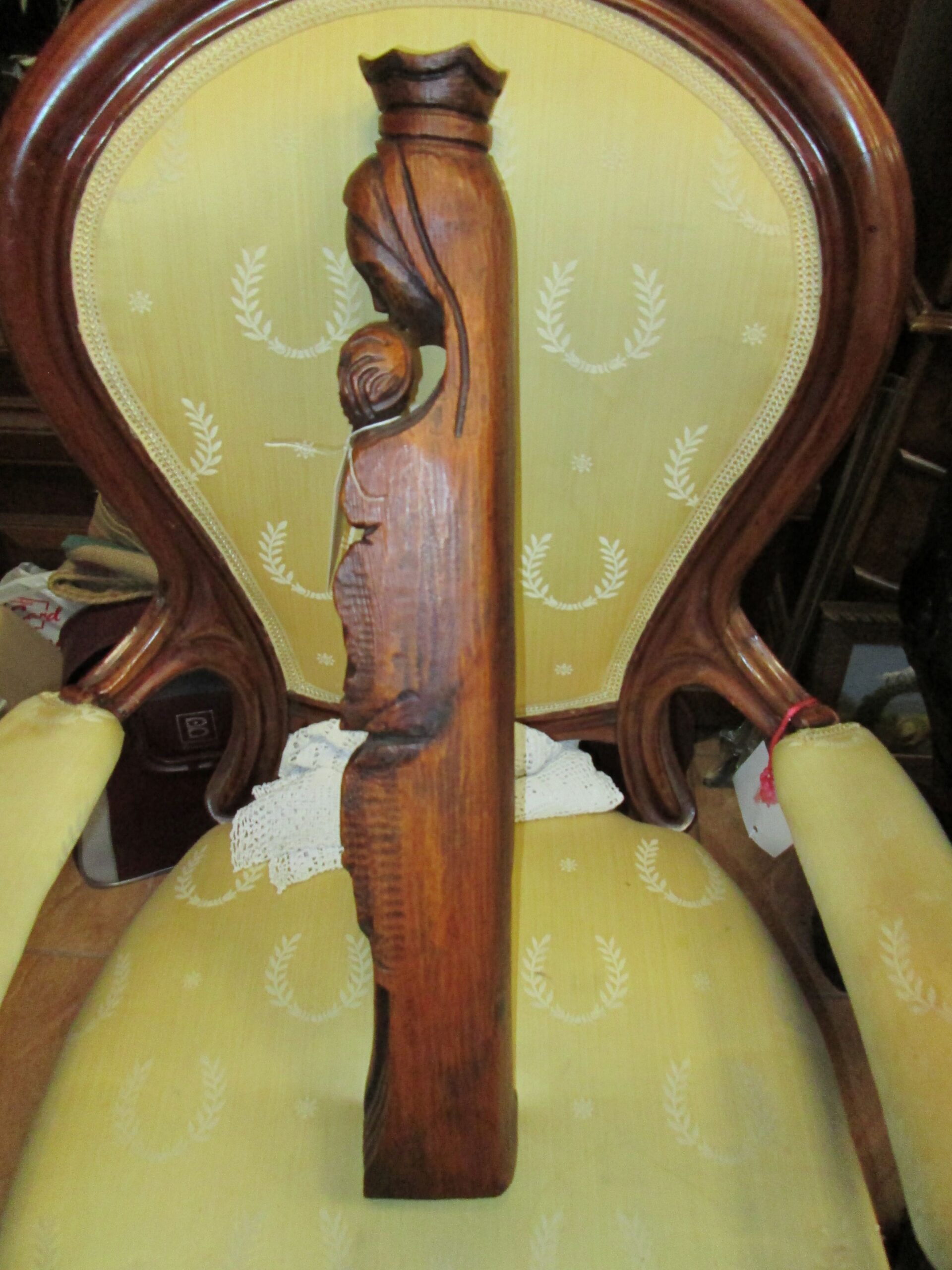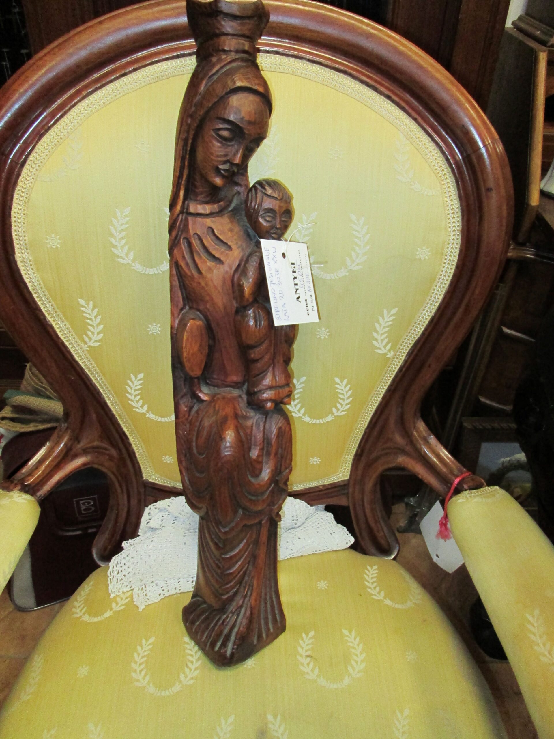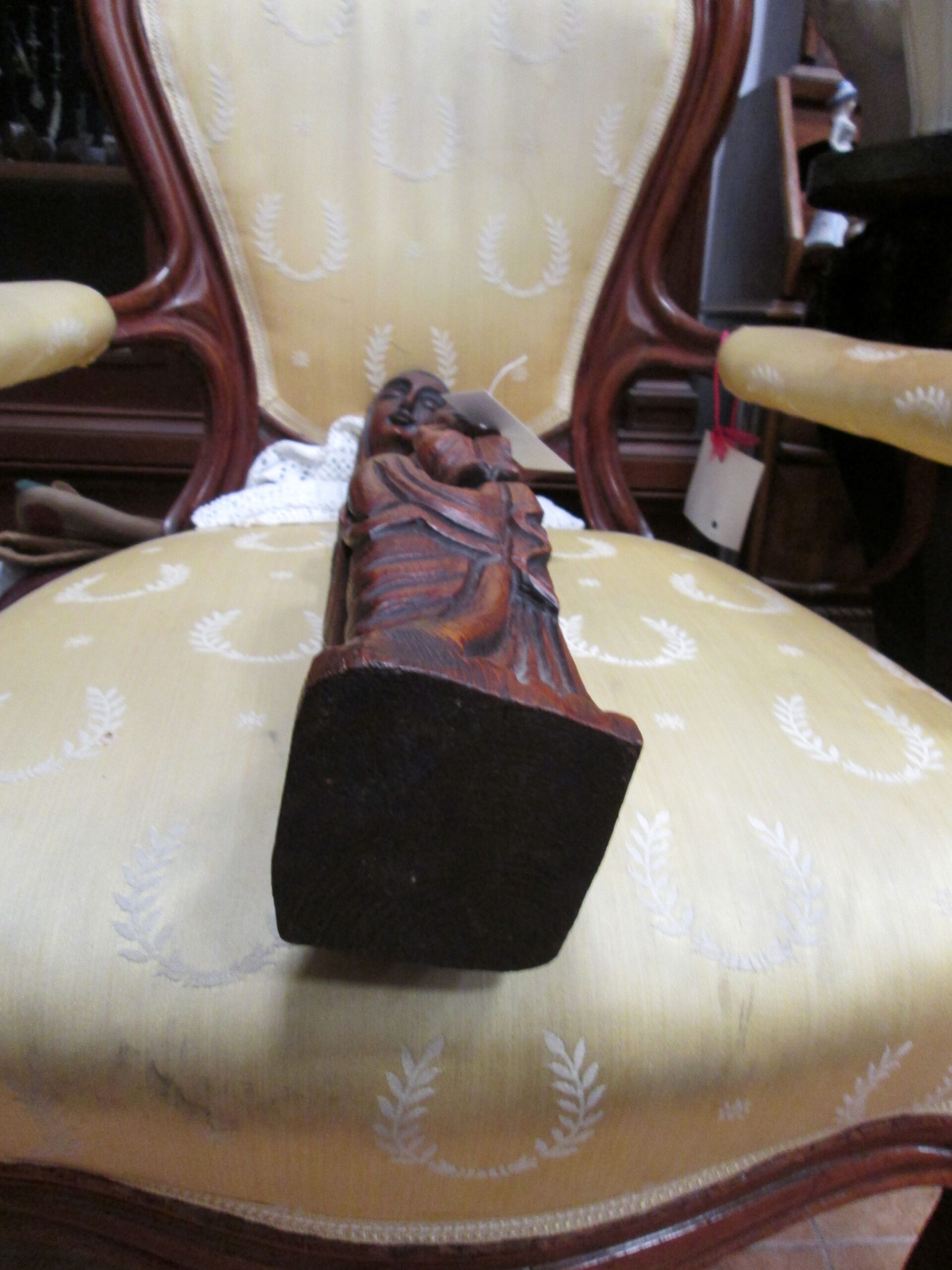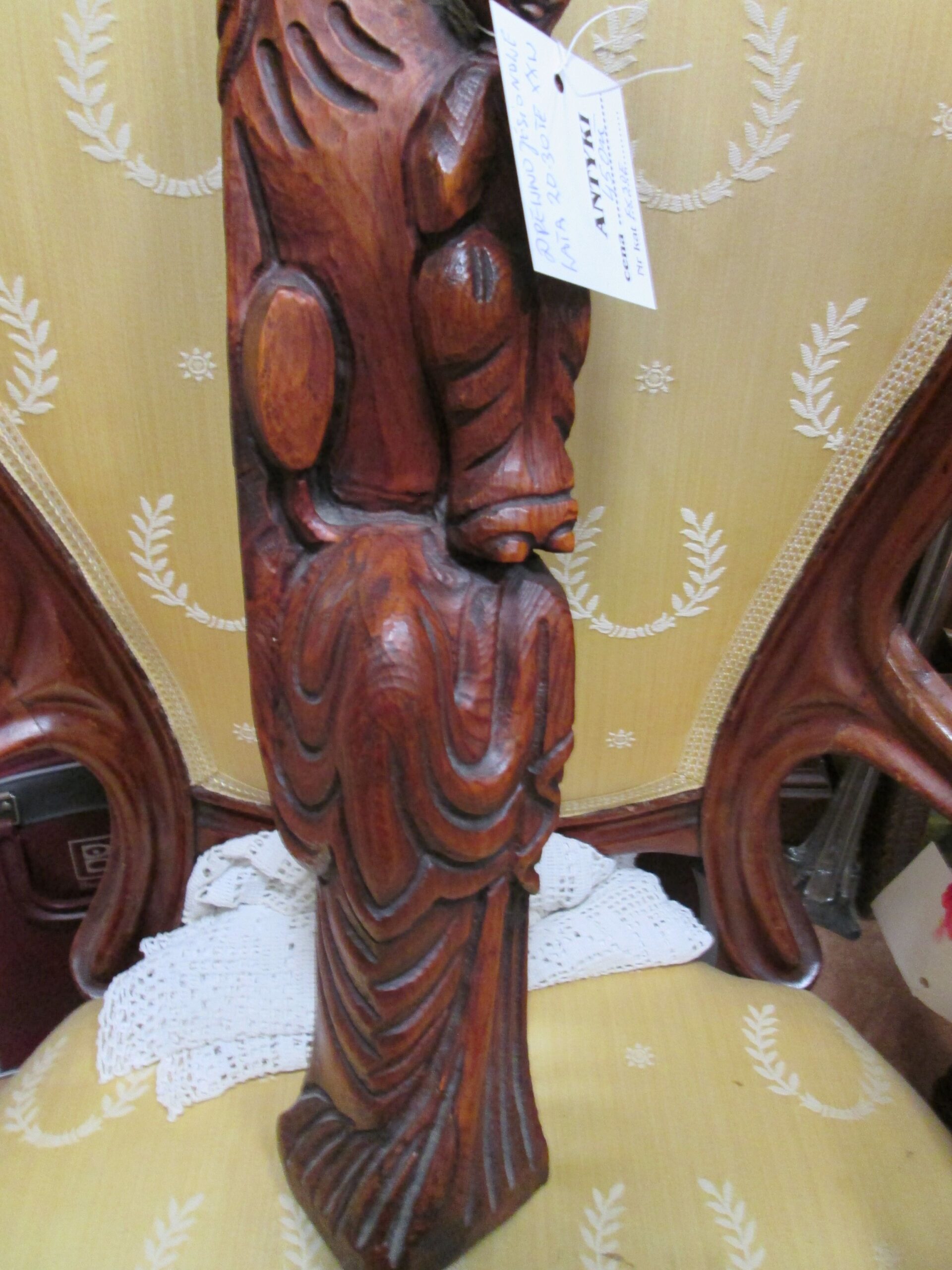 Piękna rzeźba wykonana z drewna jesionowego barwionego . Forma i sposób wykonania wskazuje na lata 20-te XX wieku. Podstawa o wymiarach 10*10 cm , wysokość 62 cm. Stan bardzo dobry.