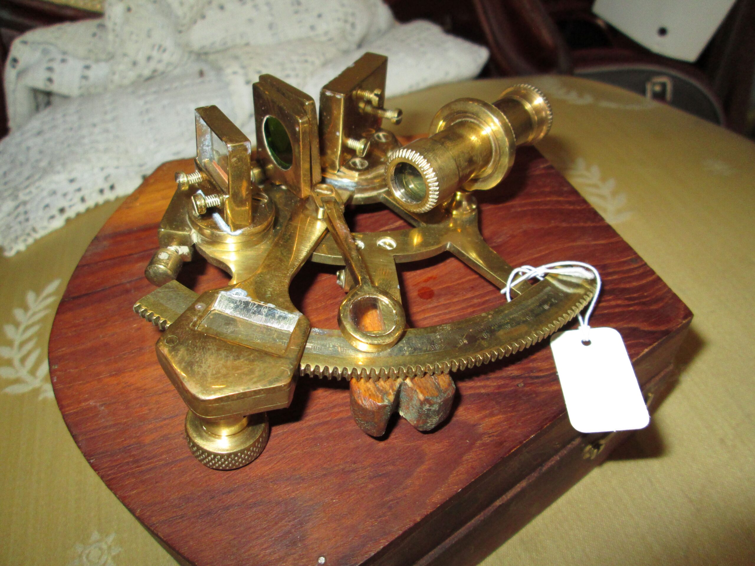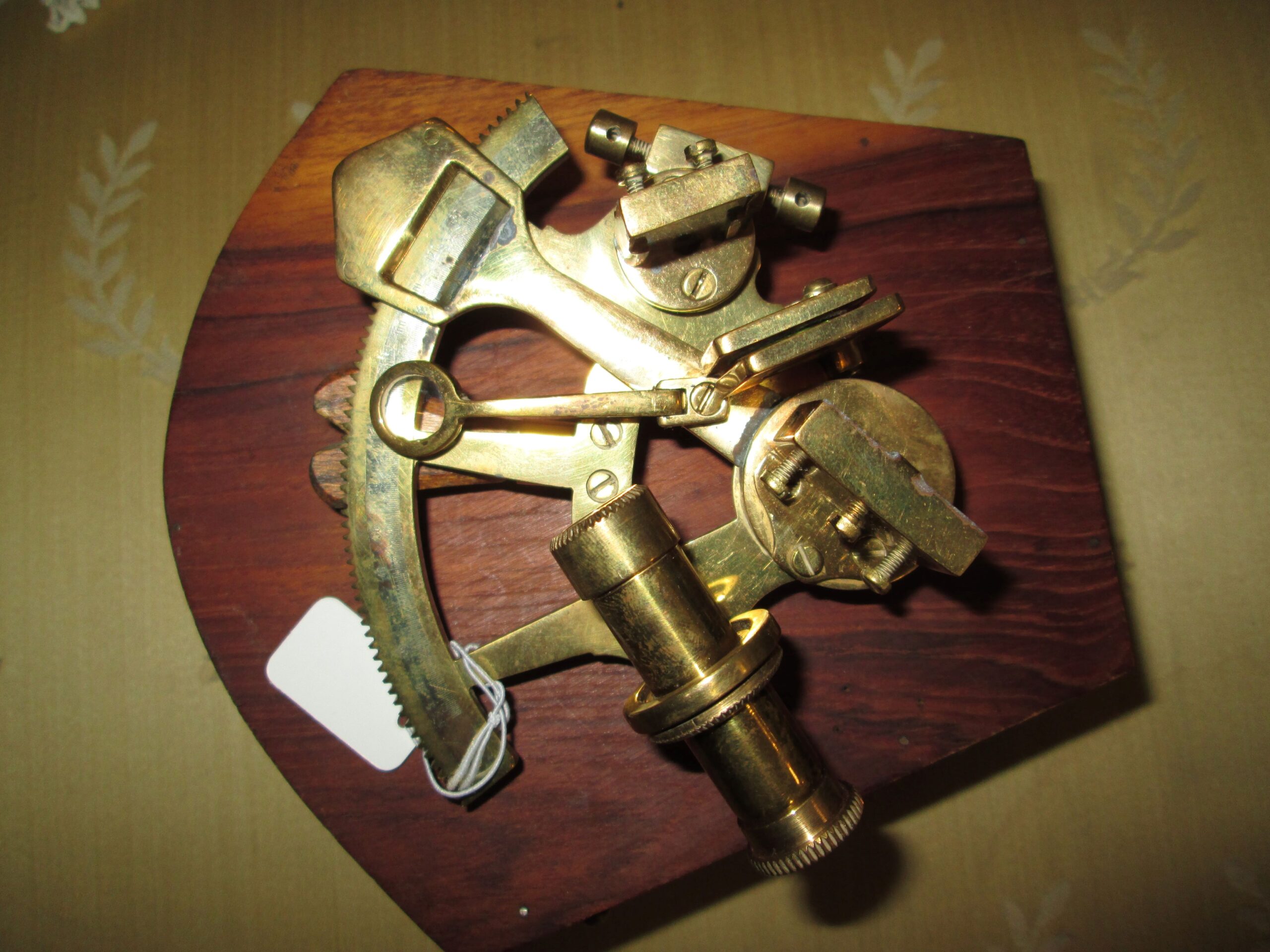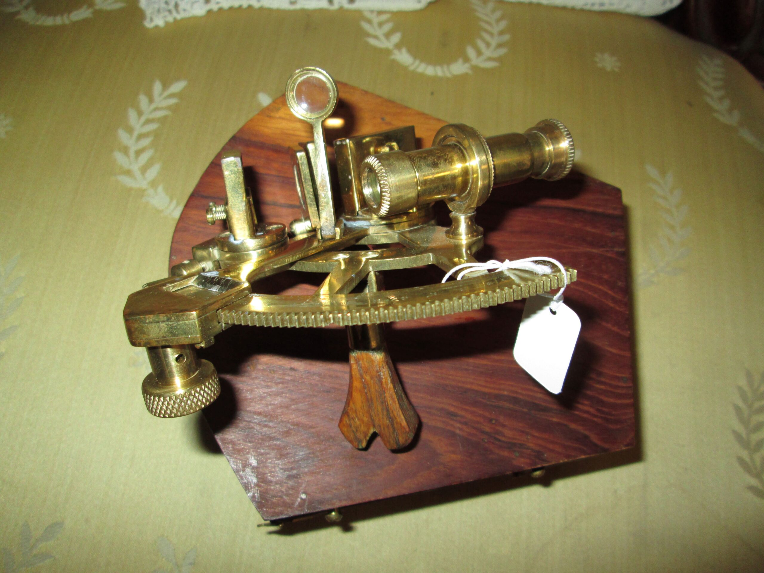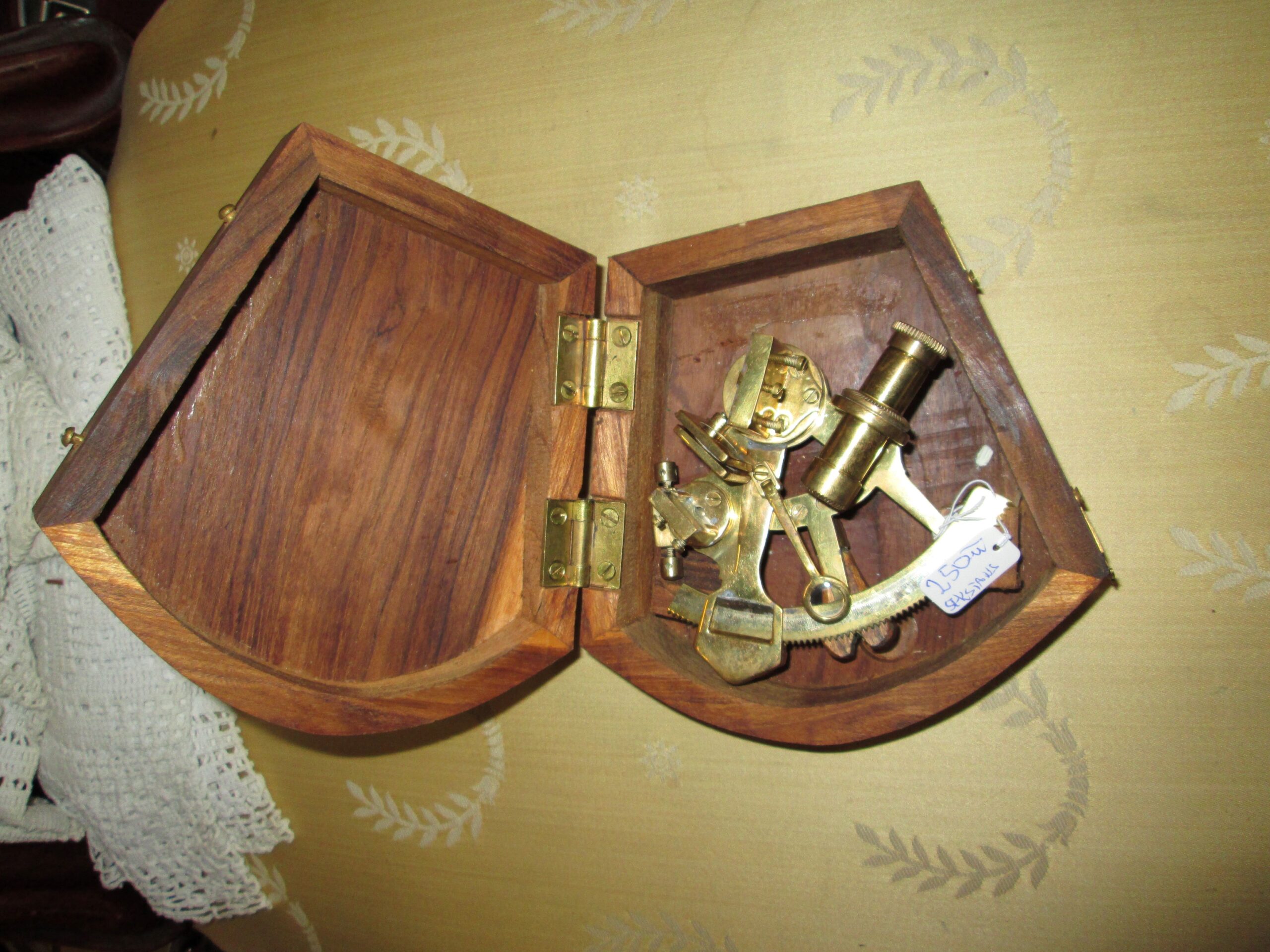 Wykonany z mosiądzu w eleganckim  pudełku z drewna sekstans. Bardzo ozdobny i elegancki prezent dla miłośników morza i lubiących elementy z nim związane.Wymiary to 10 na 10 cm. Wykonany w Indiach.