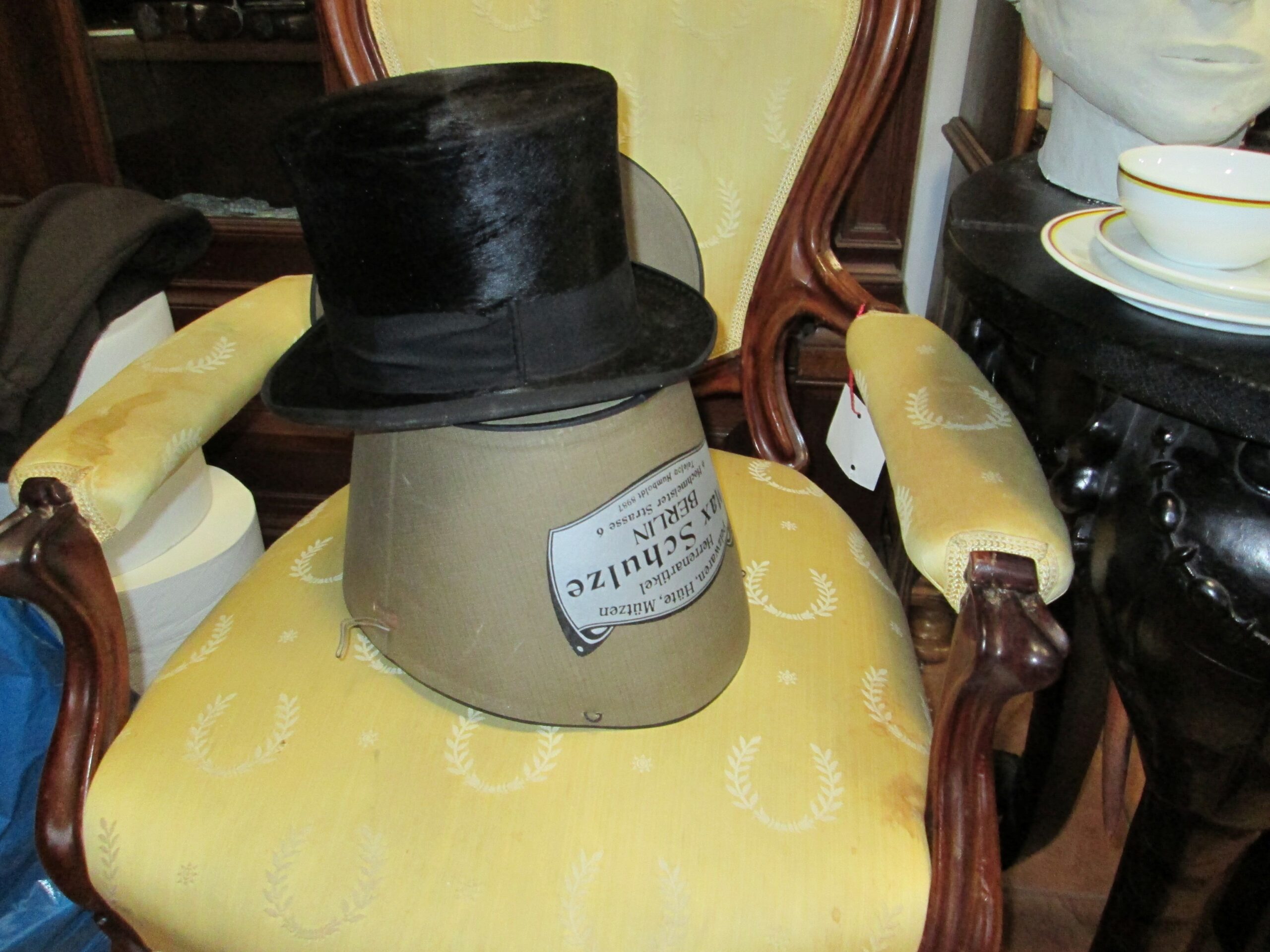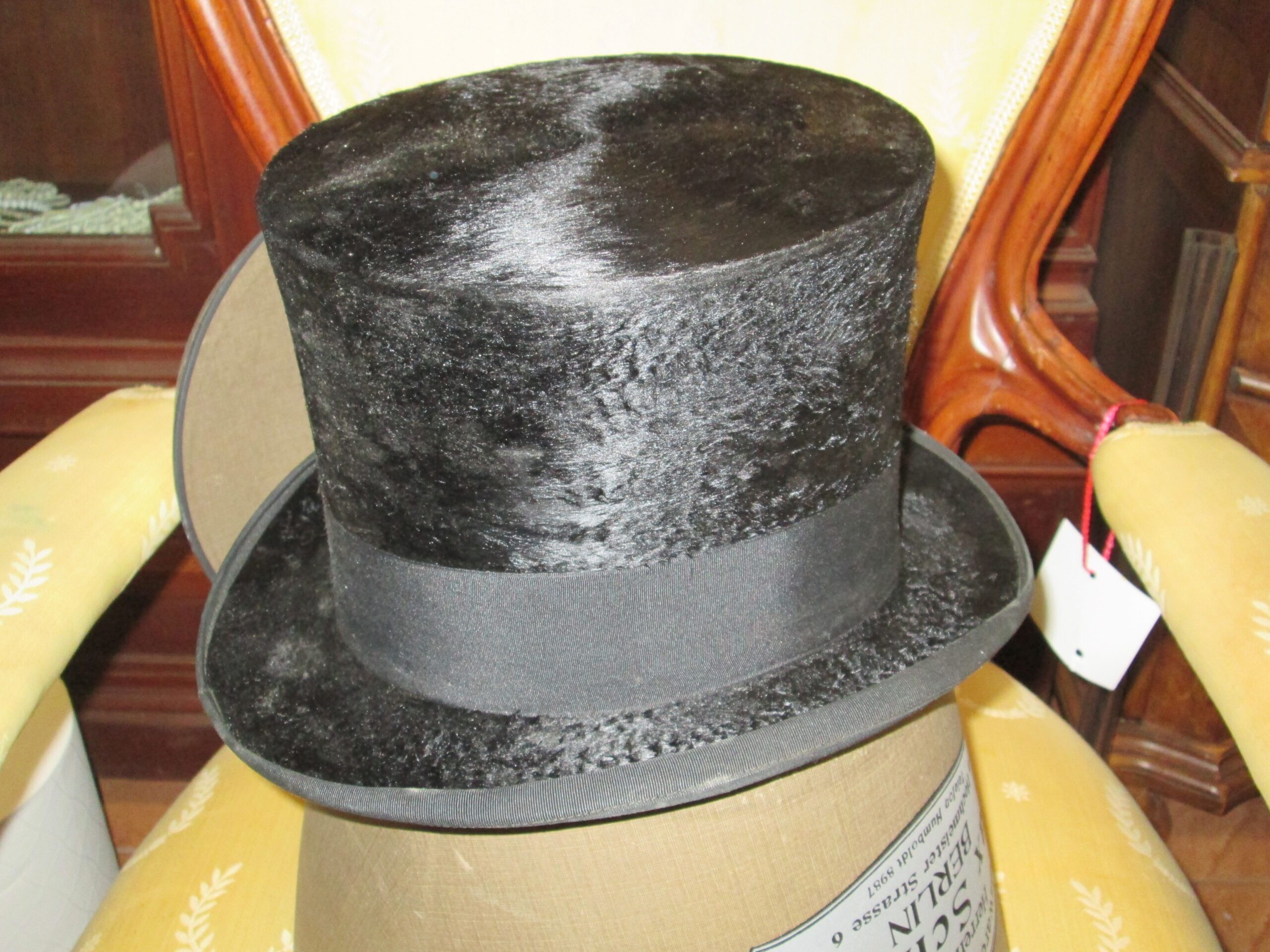 Stary cylinder wykonany w niemieckiej firmie z Berlina. Pokryty skórą z bobra lub borsuka i opaska ze skóry naturalnej. Rozmiar ok 54.Stan bardzo dobry jak na ok 80 lat. Oryginalne opakowanie w komplecie , sygnowane. Idealny do sklepu z czapkami lub dla magika.