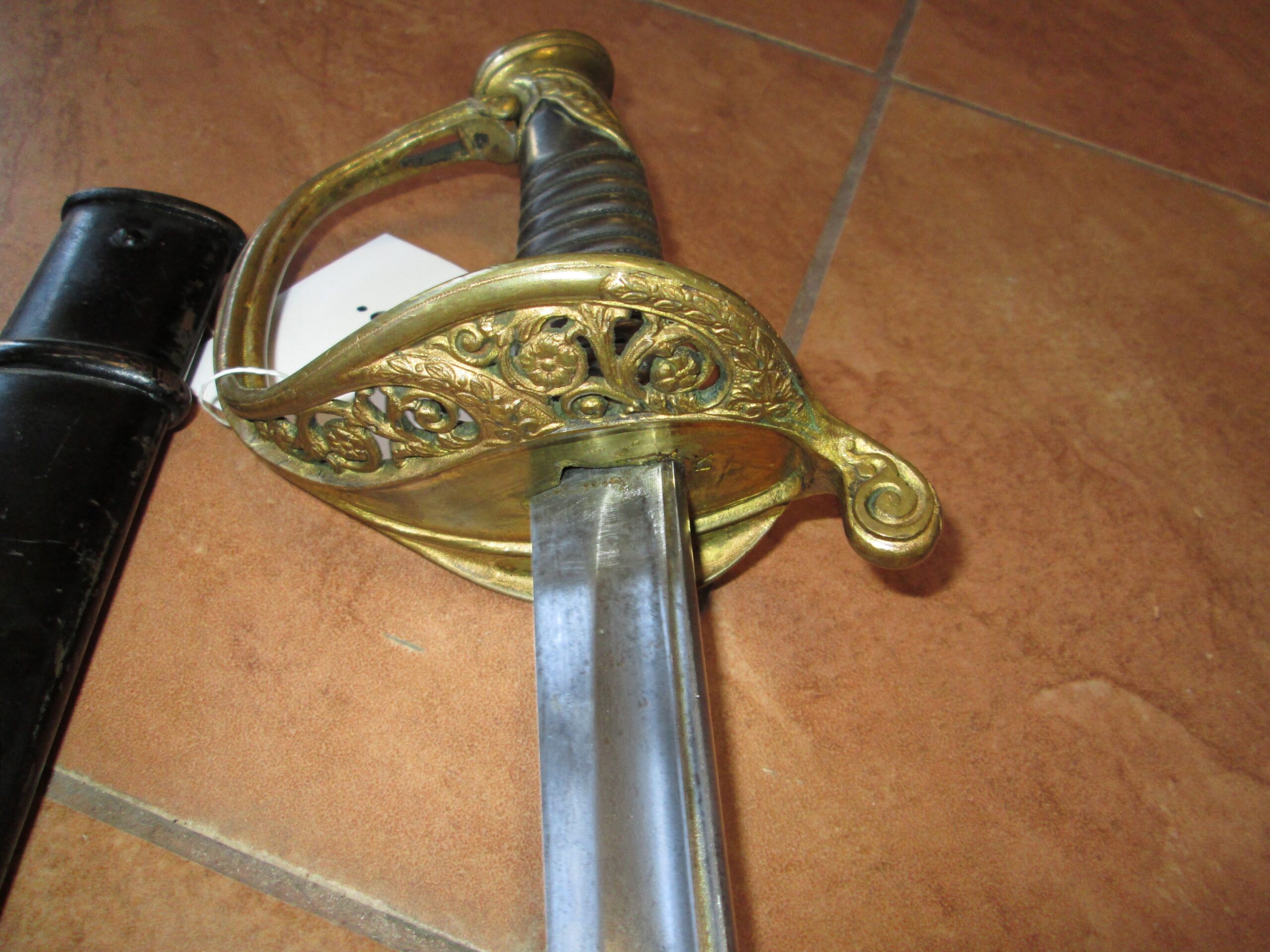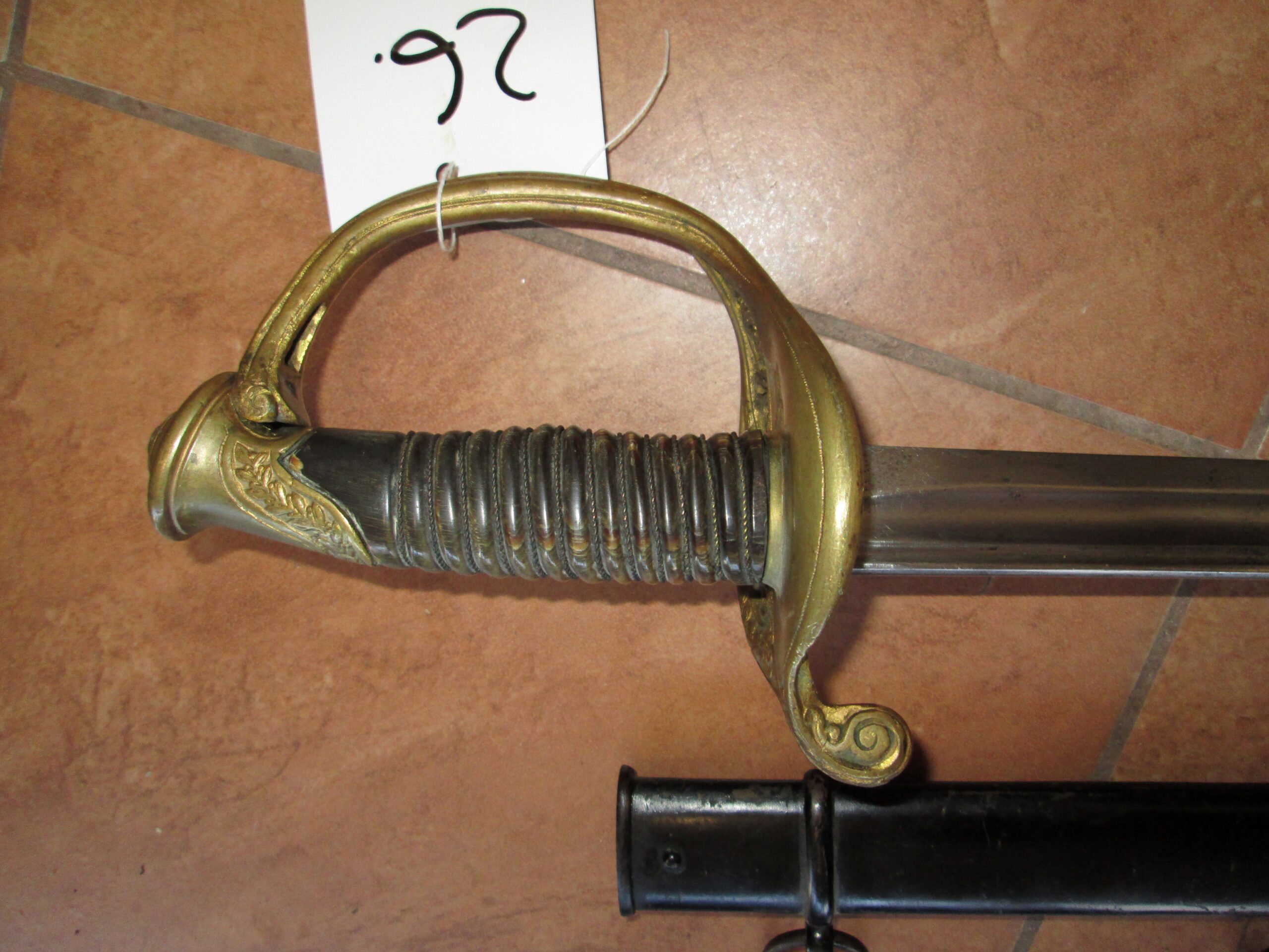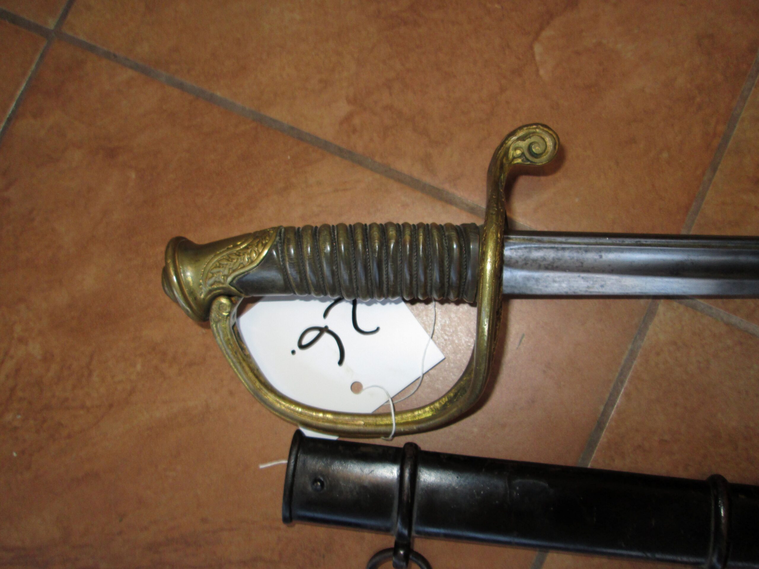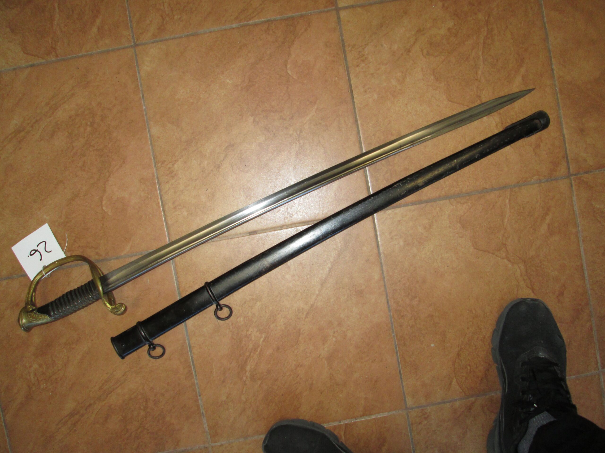 Szabla oficera piechoty francuskiej.Wzór 1855. Długość z pochwą 95 cm, szabli 92 cm, ostrza 77.Stan dobry.