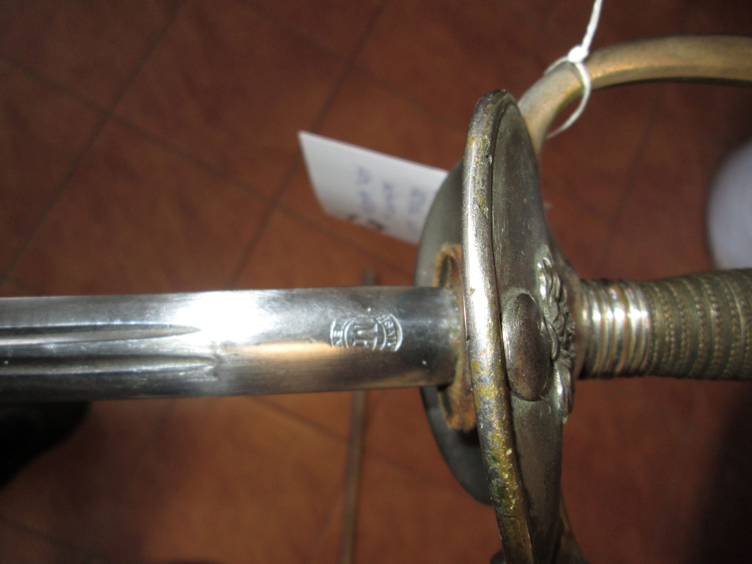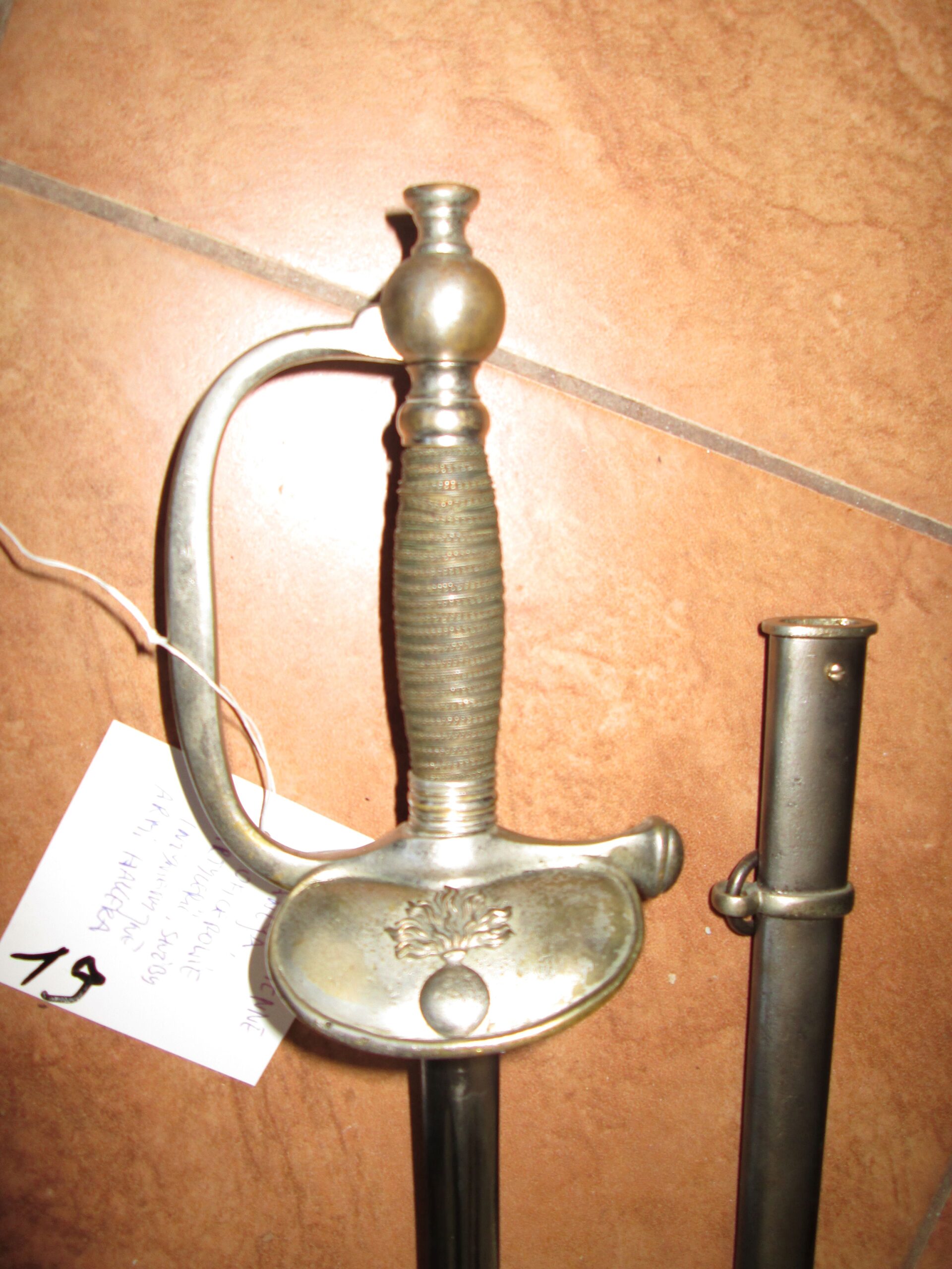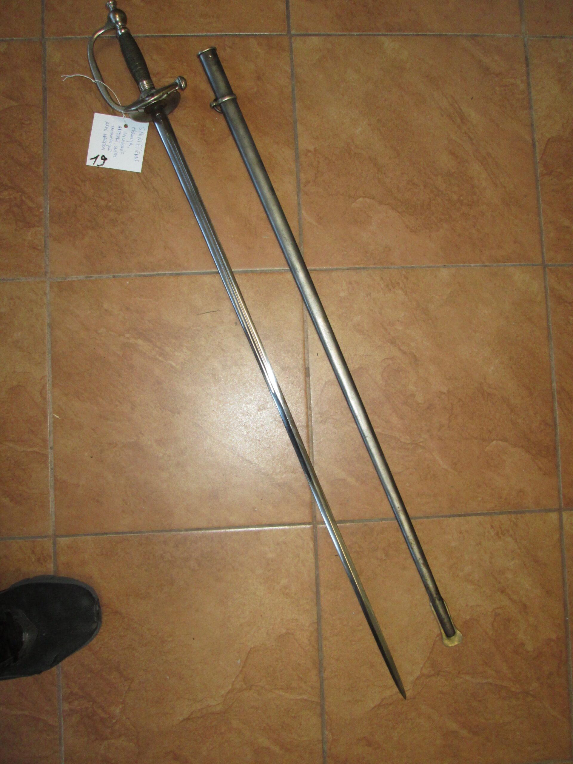 Szpada podoficera piechoty francuskiej. Wzór 1887.Sygnatura Saint Etienne Francja. Szpady takie używane były przez podoficerów armii Hallera. Długość w pochwie 102 cm , szpady 100 cm , ostrza 84.5 cm. Stan dobry plus.