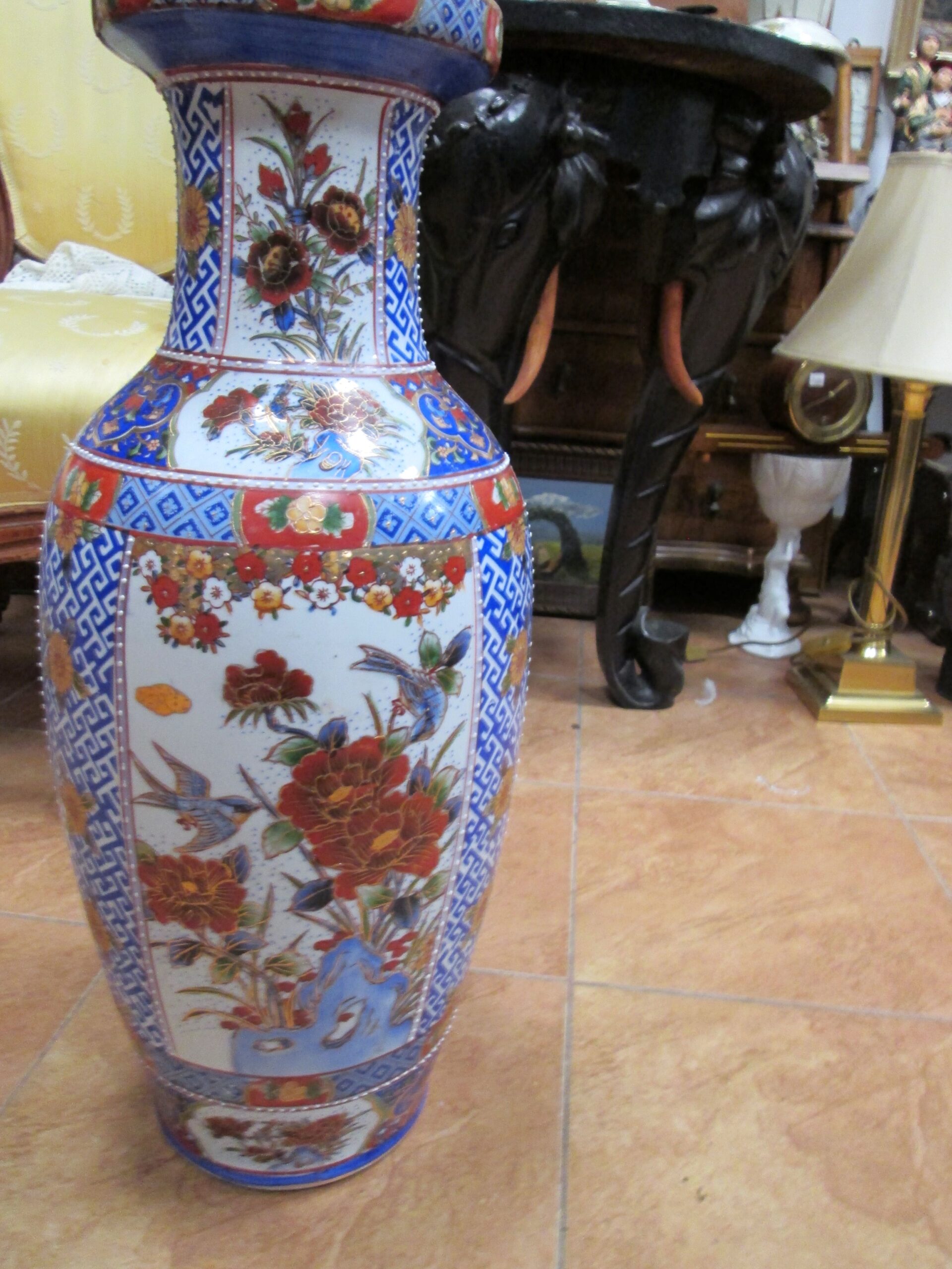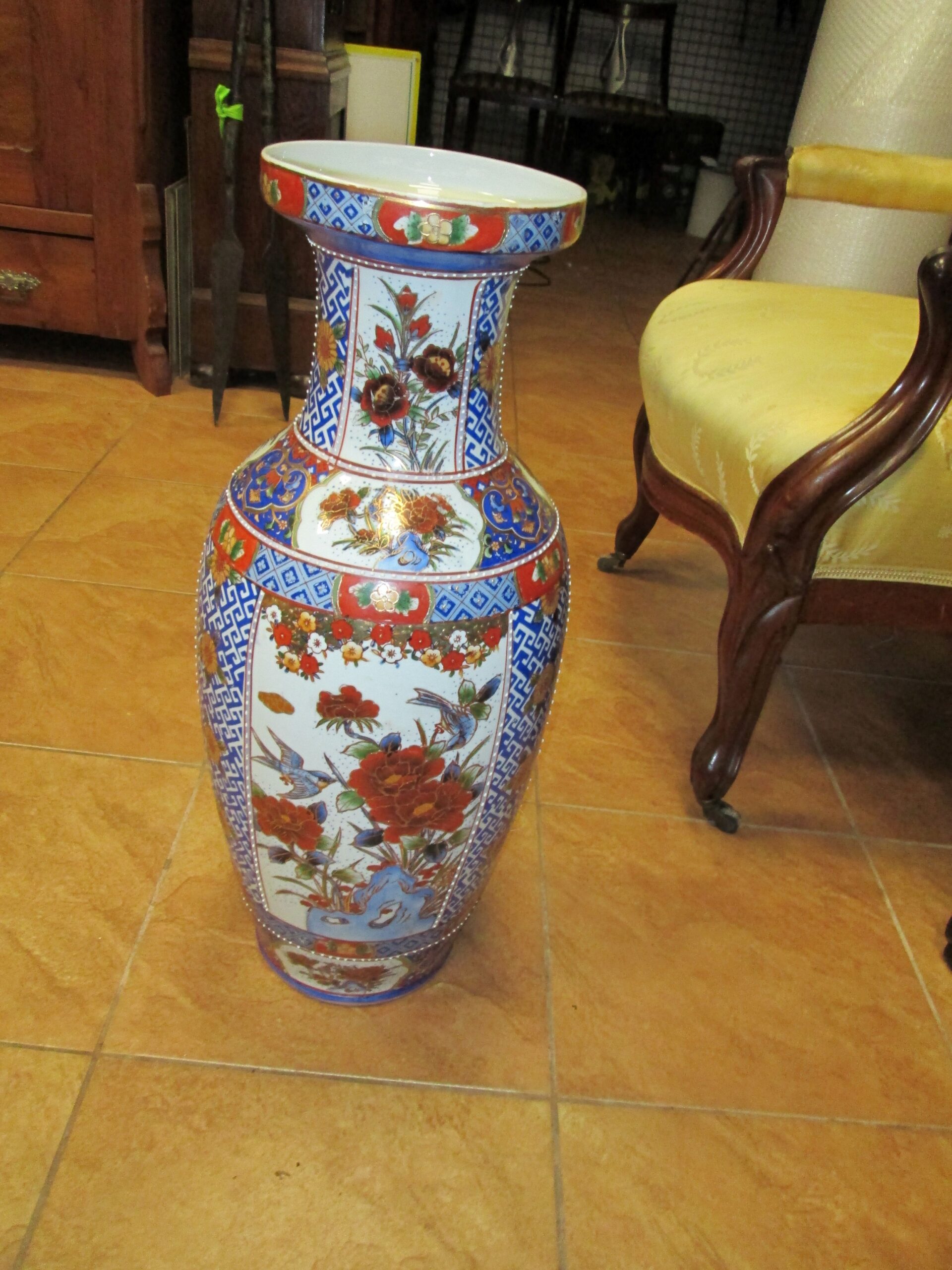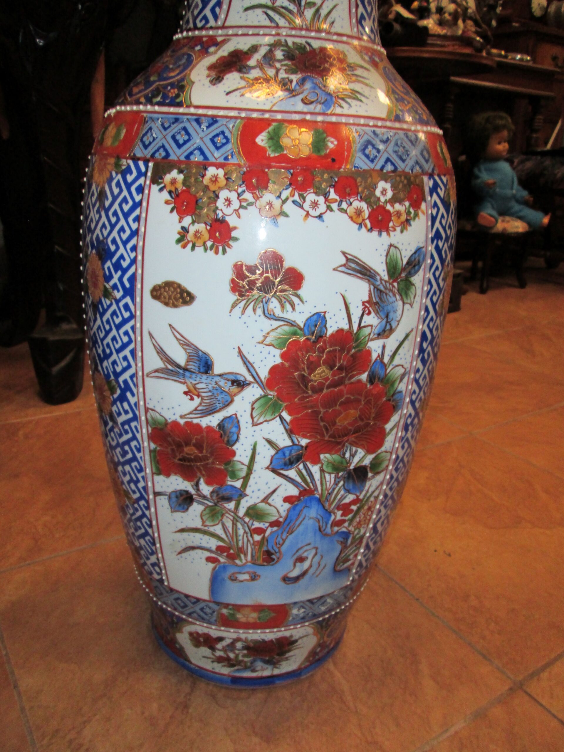 Ogromny wazon wykonany w Chinach w latach 90-tych XX wieku. Ręcznie malowany. Sygnowany. Średnica ok 23 cm , wysokość 60 cm. Stan bardzo dobry.