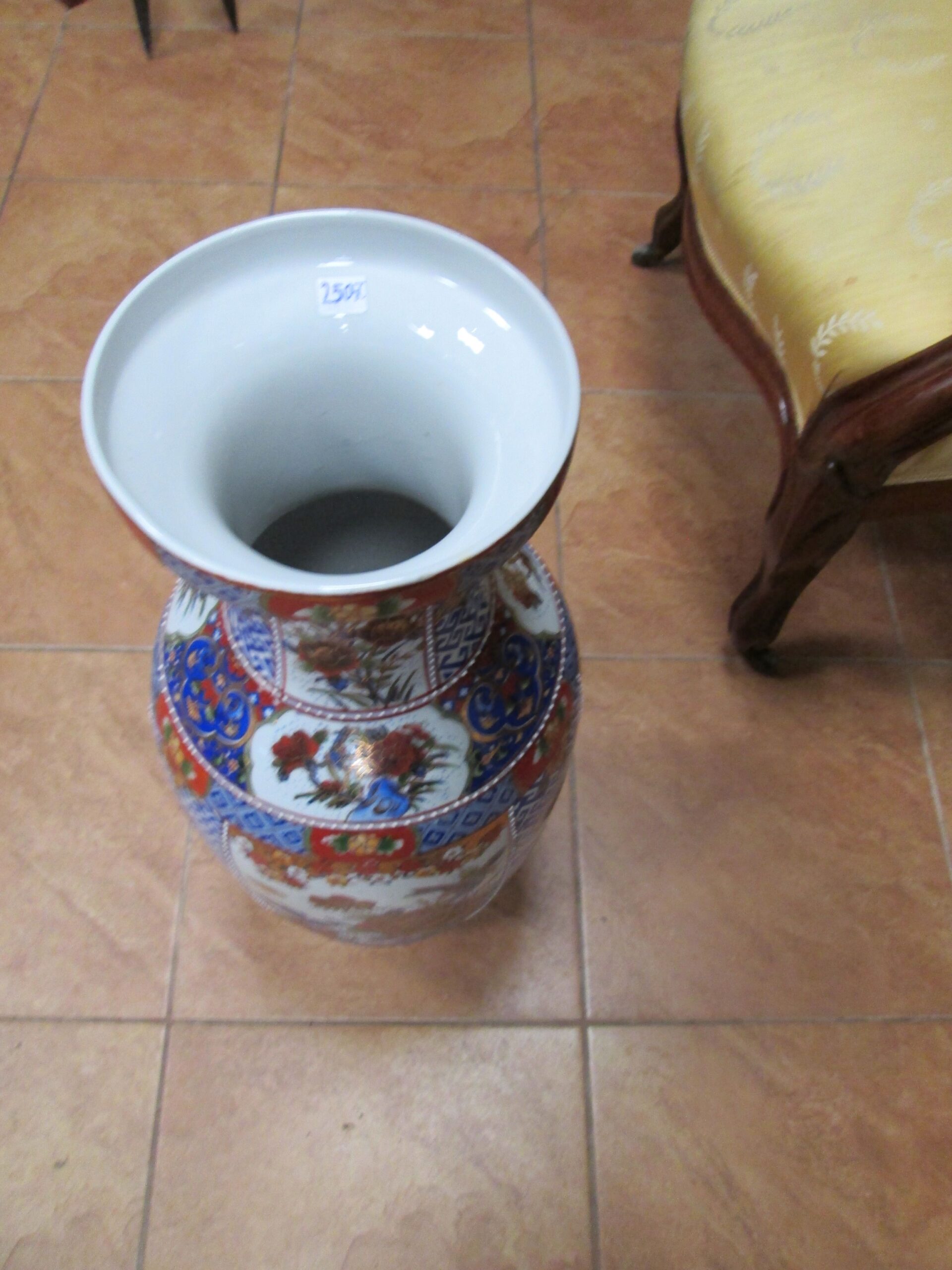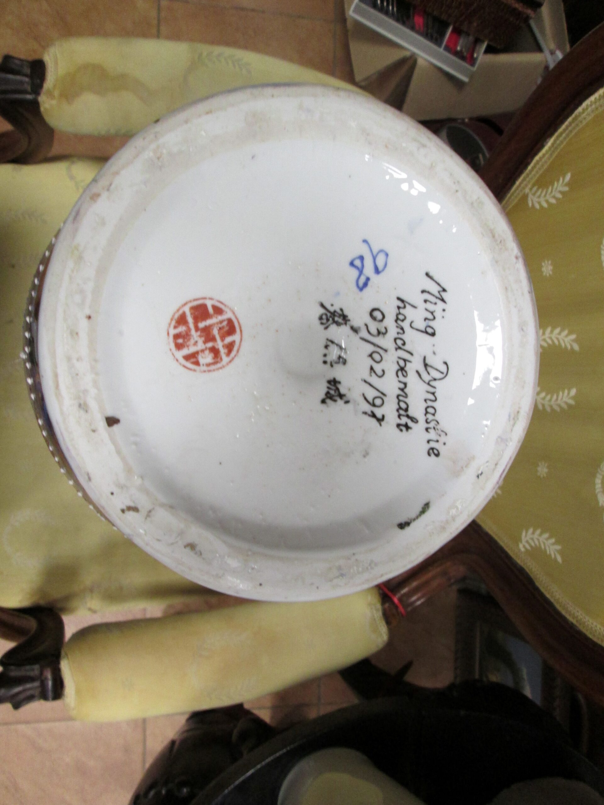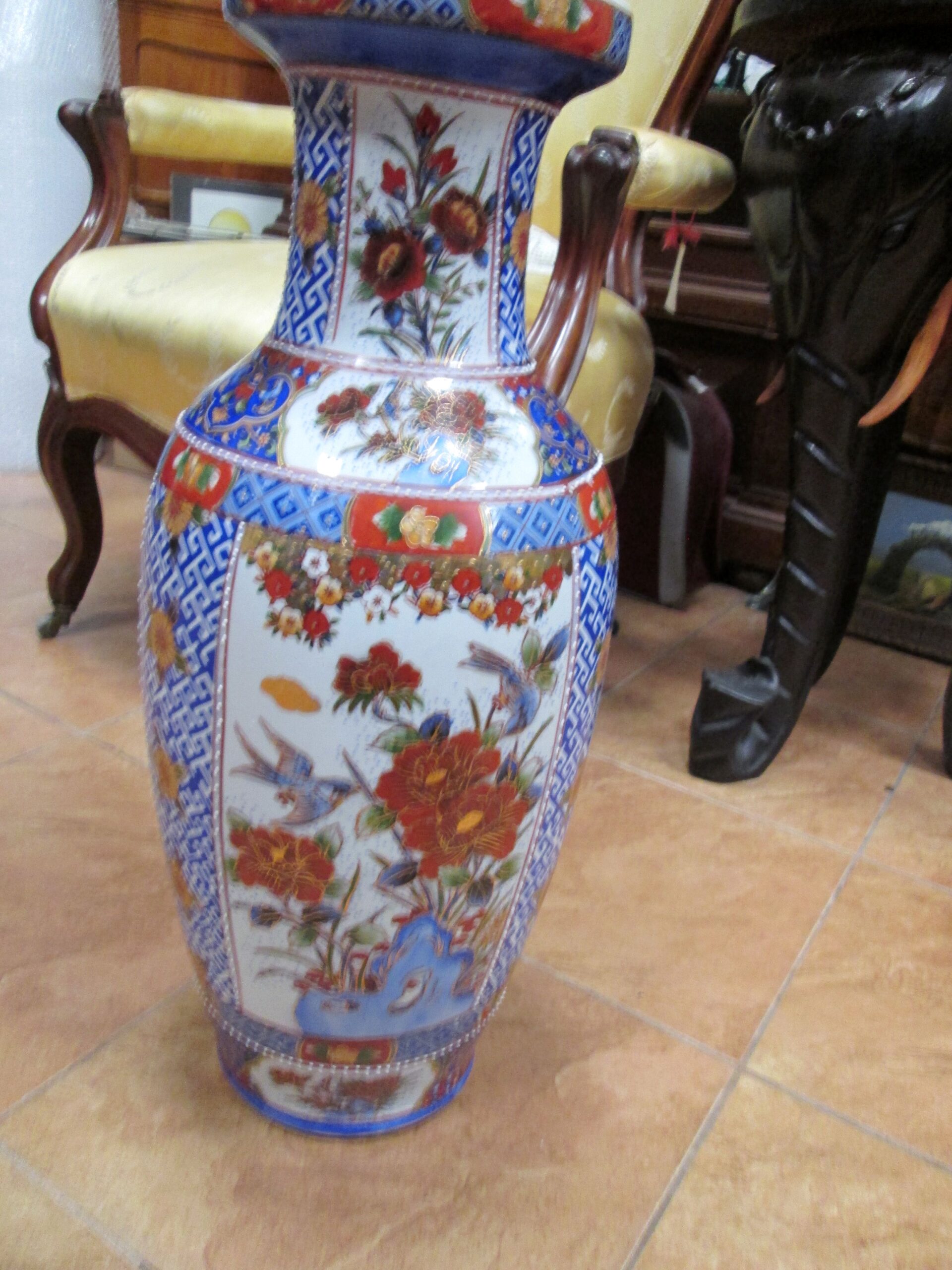 Ogromny wazon wykonany w Chinach w latach 90-tych XX wieku. Ręcznie malowany. Sygnowany. Średnica ok 23 cm , wysokość 60 cm. Stan bardzo dobry.