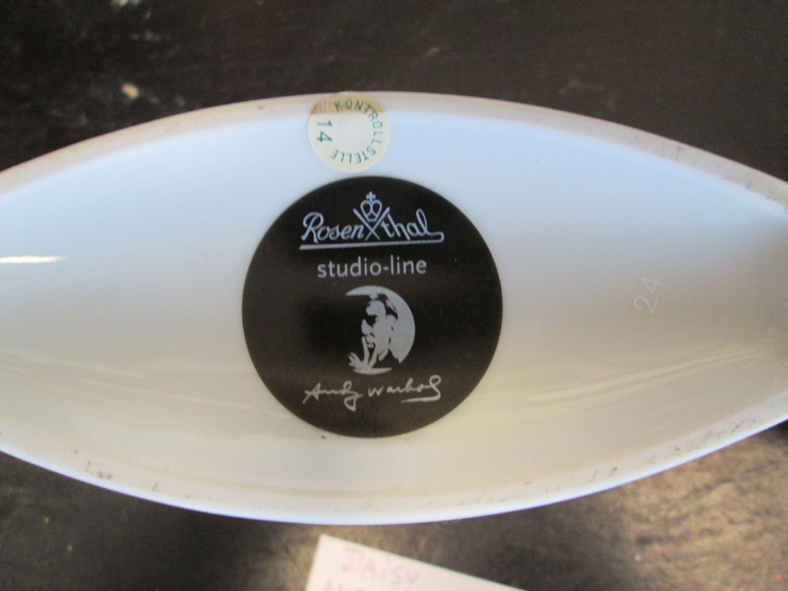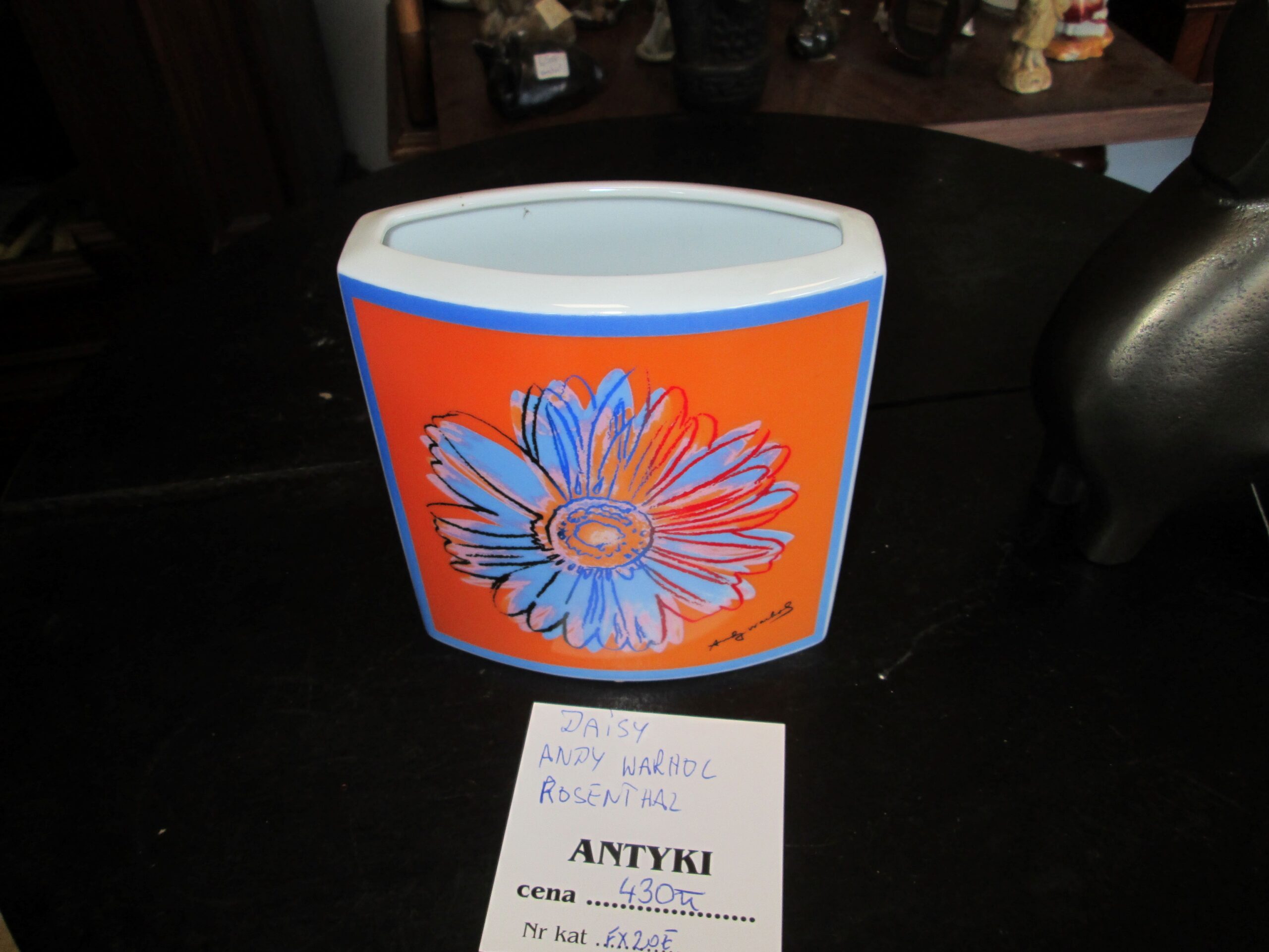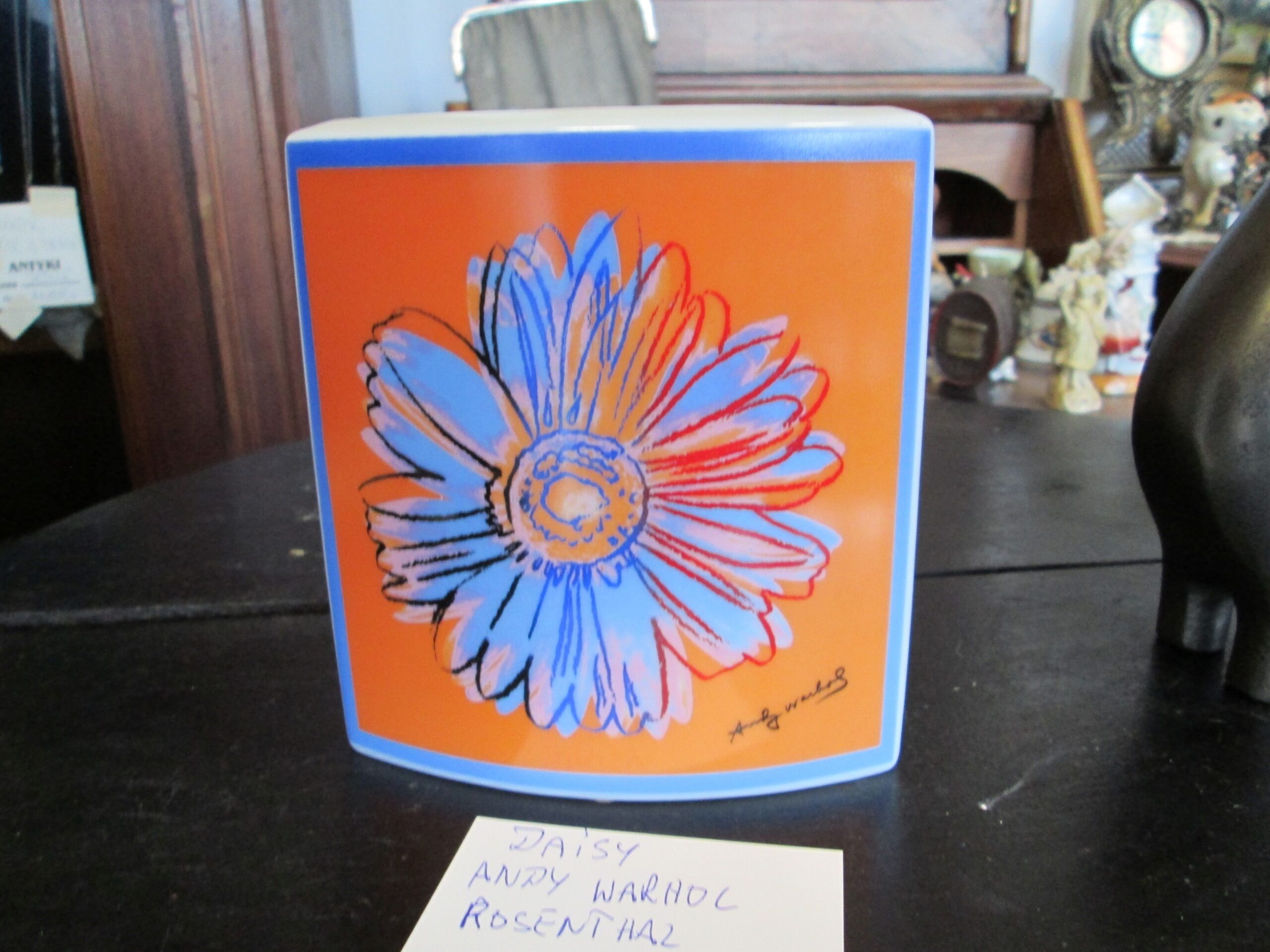 Porcelanowy wazon wykonany w firmie Rosenthal. Projekt zwany Daisy wykonany przez słynnego artystę Andy Warhol.Kształt nie regularny o wymiarach ,szerokość 12.5 ,głębokość 6 cm , wysokość 13.5 cm. Stan bardzo dobry. Rzadkość na naszym rynku. Sygnowany i podpisany .