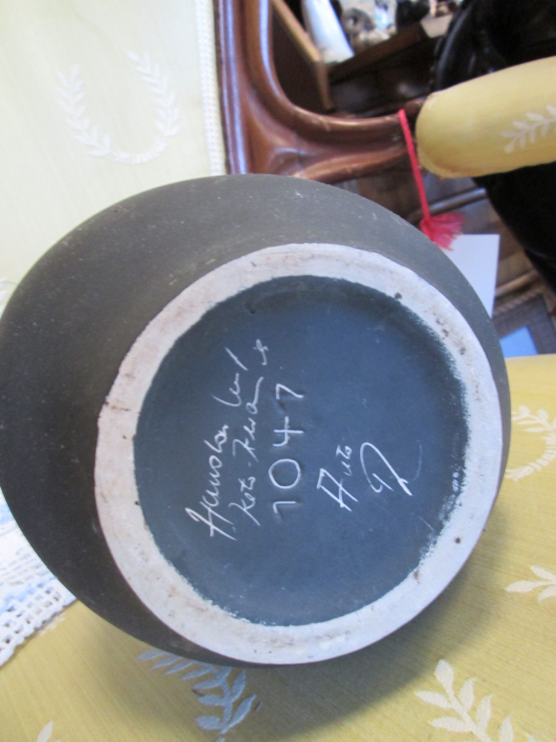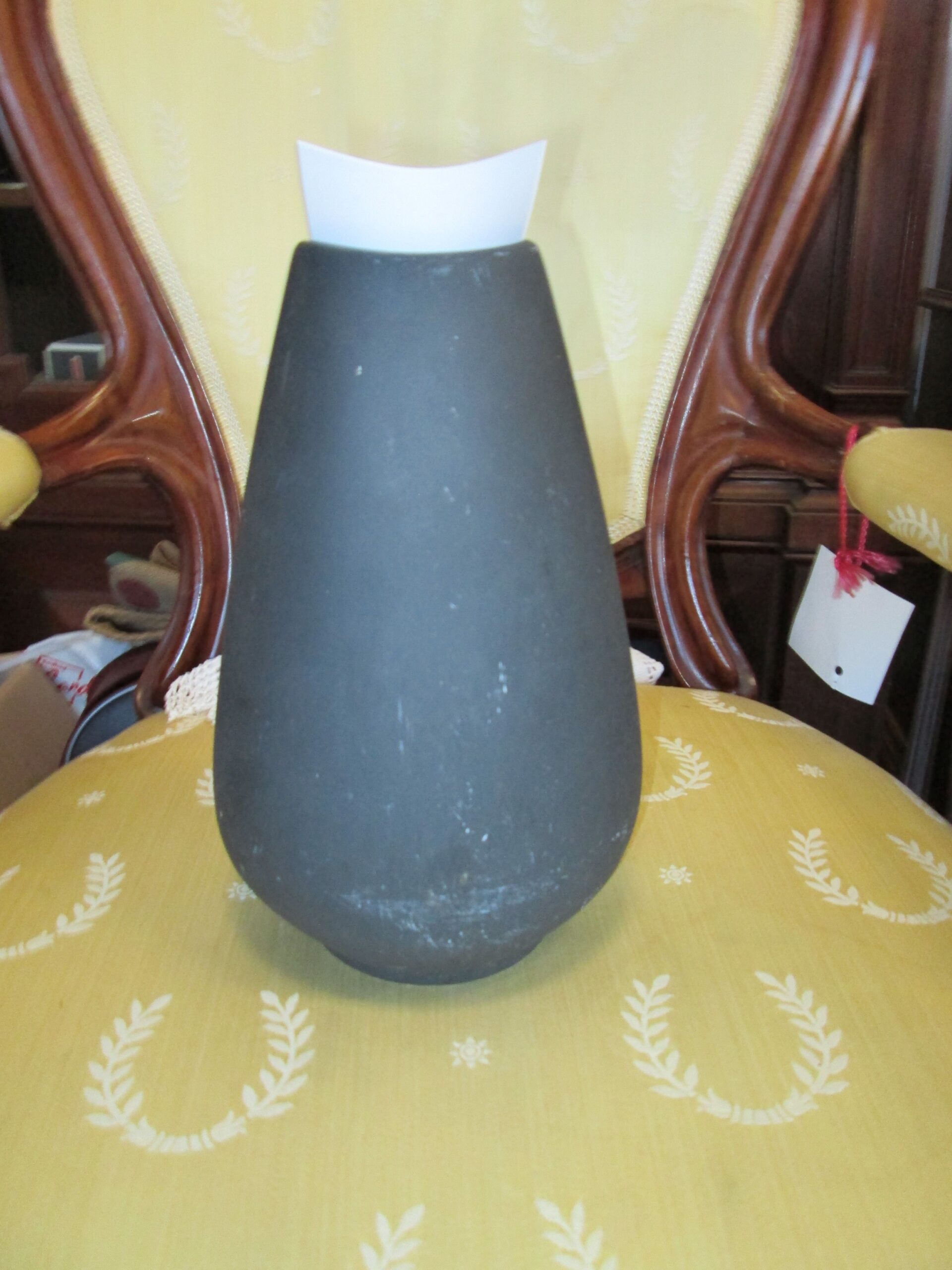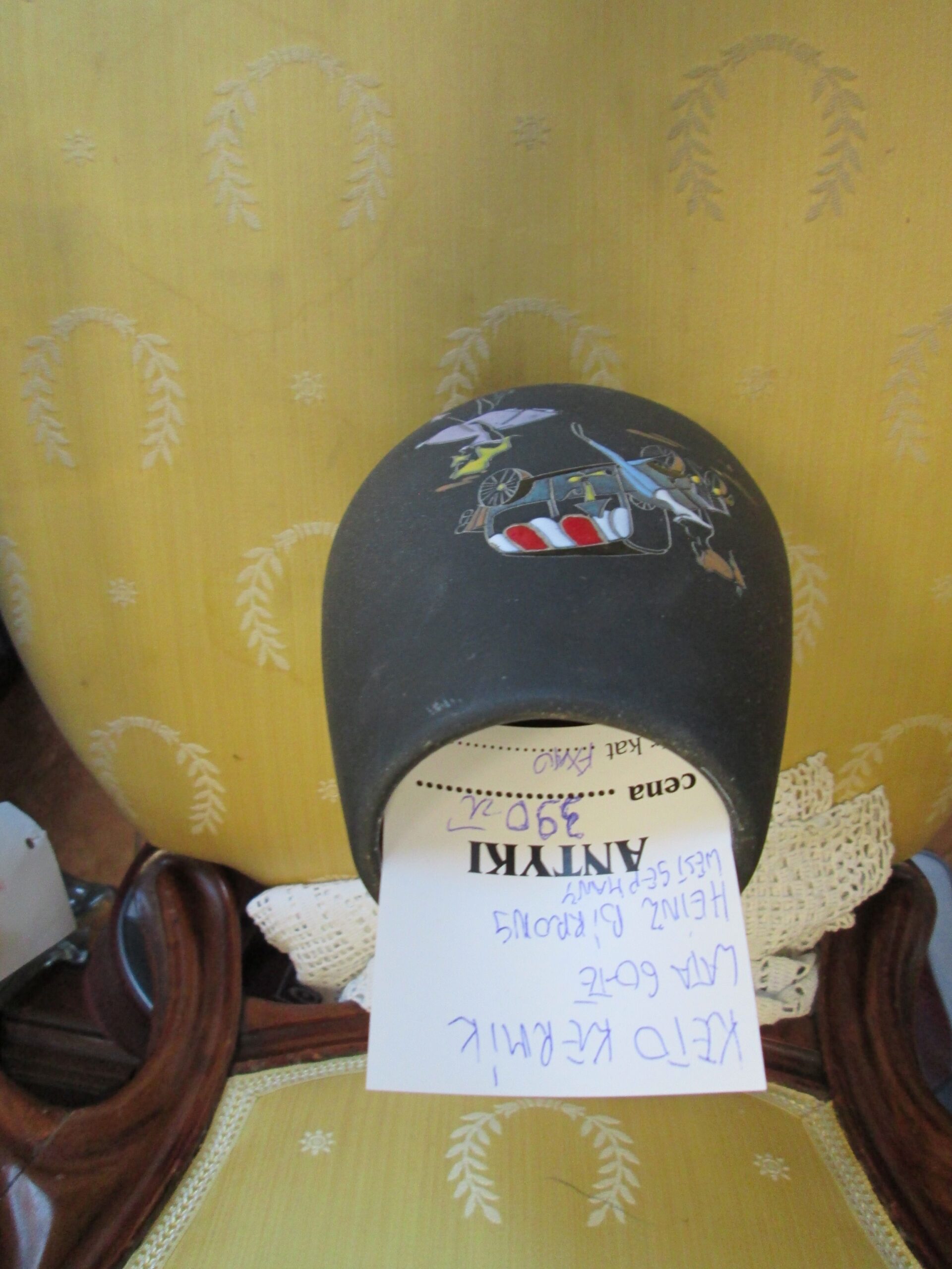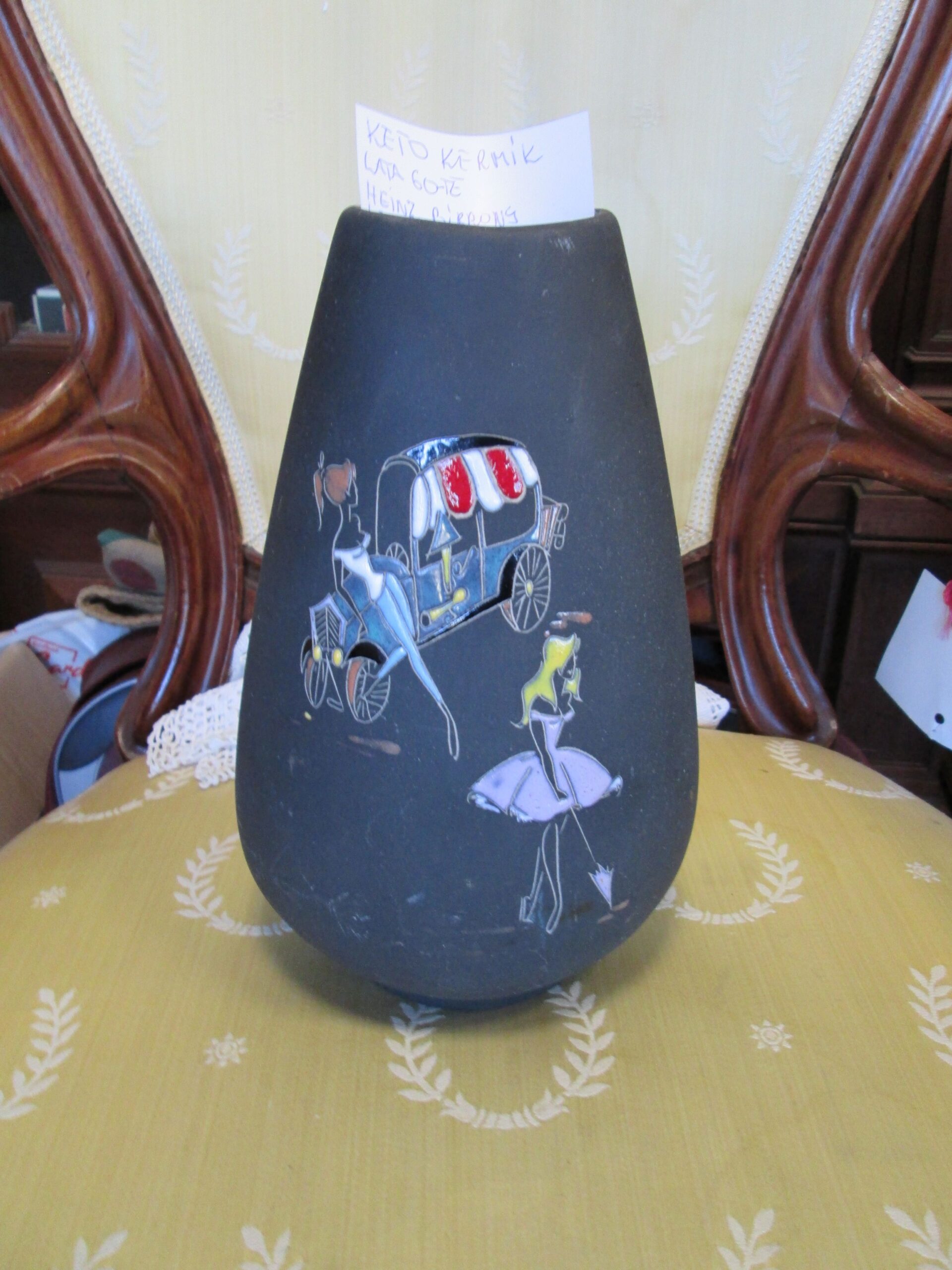 Ceramiczny wazon wykonany w latach 60-tych ubiegłego wieku w firmie Keto Keramik . Projekt wykonany Heinz Birrong.Niemcy zachodnie. Kształt owalny 15*12 cm , wysokość 25 cm. Rysy na powierzchni ciemnego tła. Ponadczasowa ceramika.