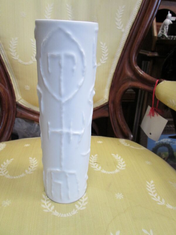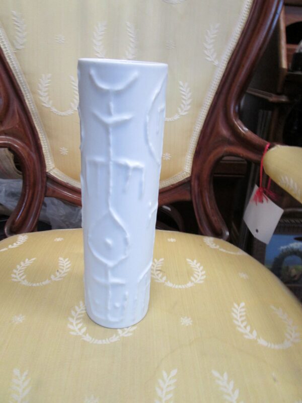 Porcelanowy wazon wykonany w firmie Rosenthal. Projekt Kuno Fischer. Nazwa wazonu Totem. Średnica 72 mm , wysokość 25.5 cm.Stan bardzo dobry.