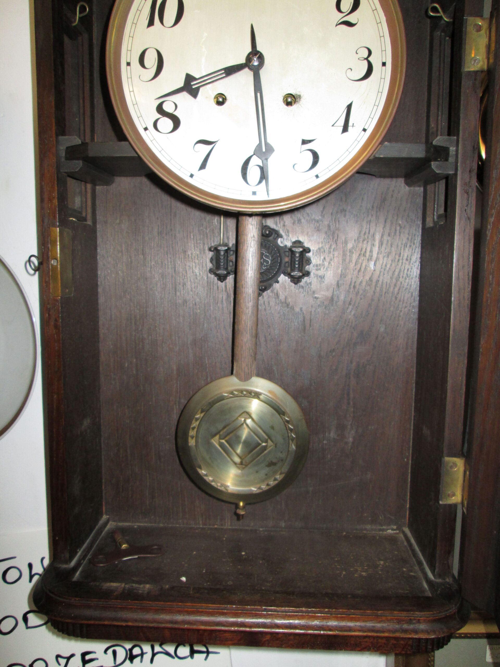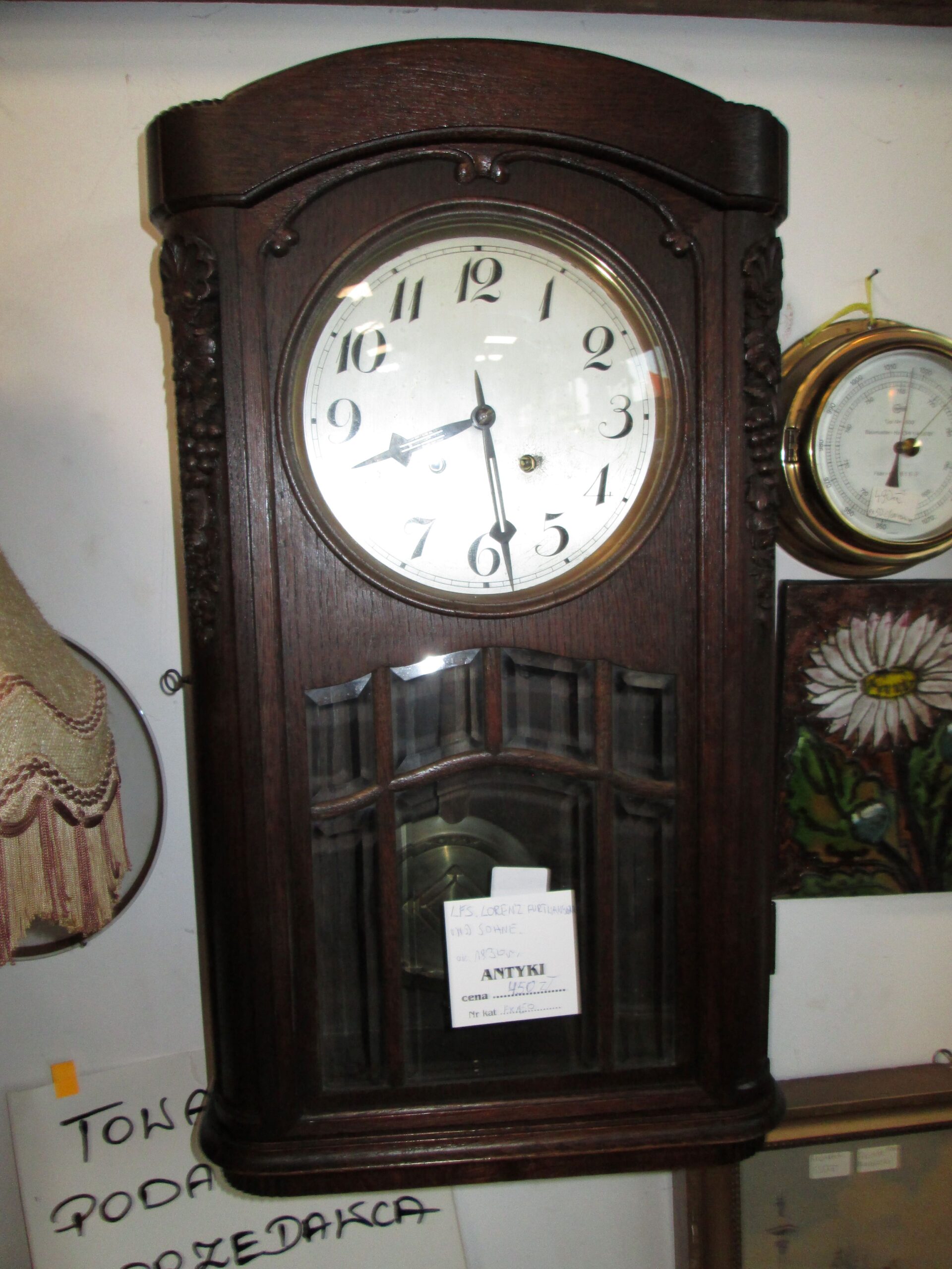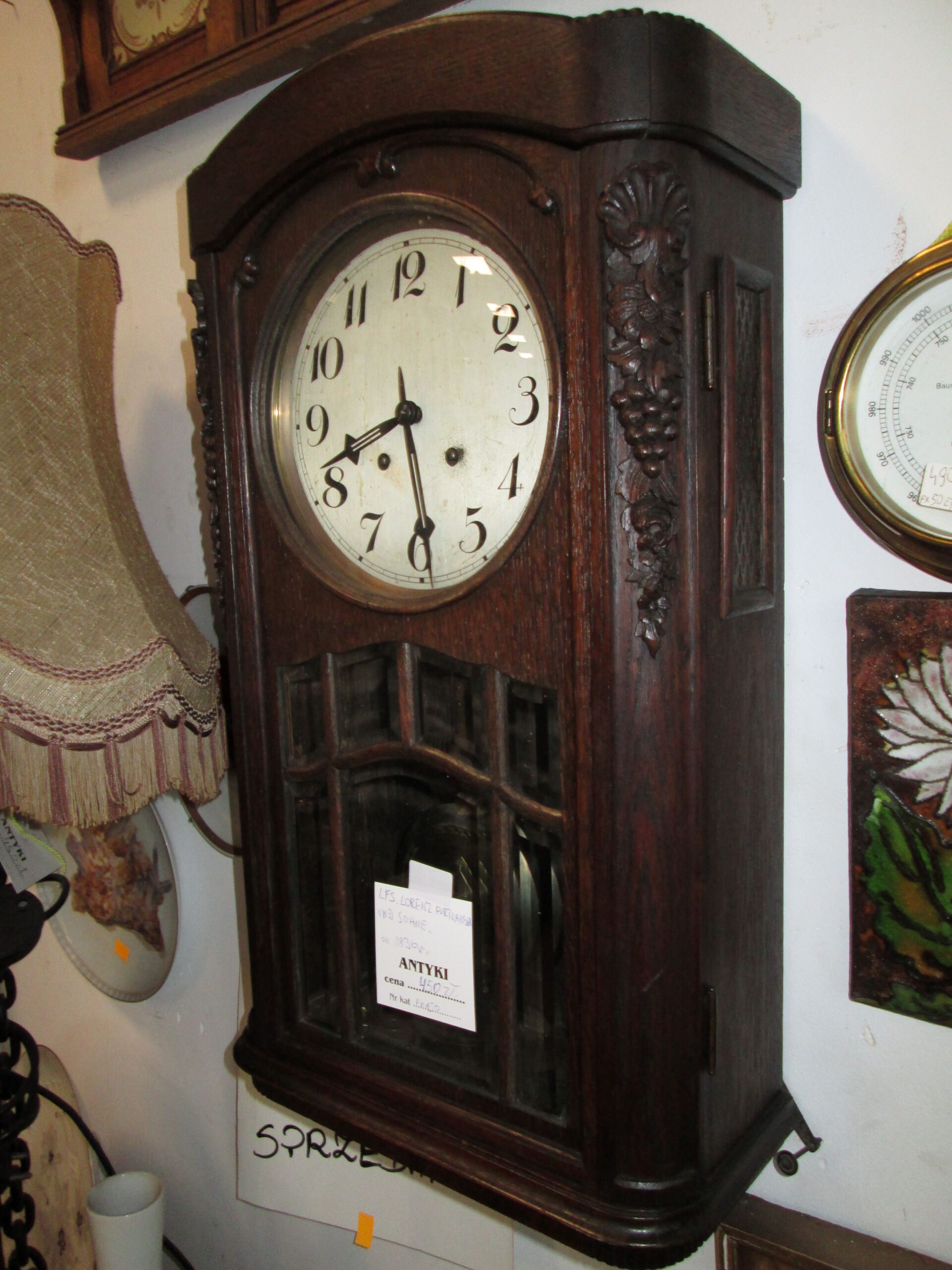 Piękny wiszący zegar z epoki Art deko firmy Lorenz Furtwangler und Sohn z Niemiec. Piękne rzeźbienia na drzwiczkach. Szkło kryształowe fazowane. Mechanizm sprawny i na chodzie z kluczykiem. Wysokość 65 cm , szerokość 36 cm , głębokość 18 cm. Stan ogólny bardzo dobry.
